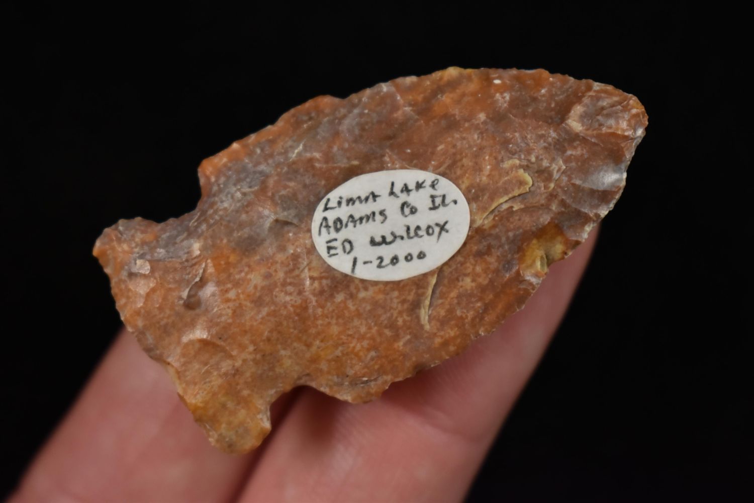1 7/8" Godar Point Found in Lima Lake, Adams County IL by Ed Wilcox in 2000. Native American Artifact