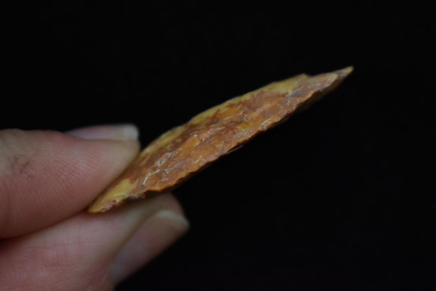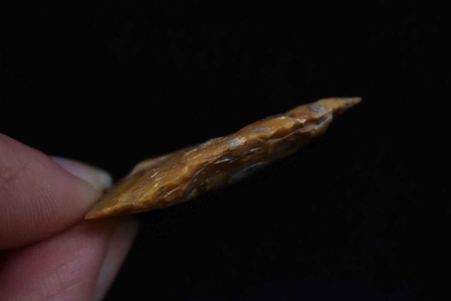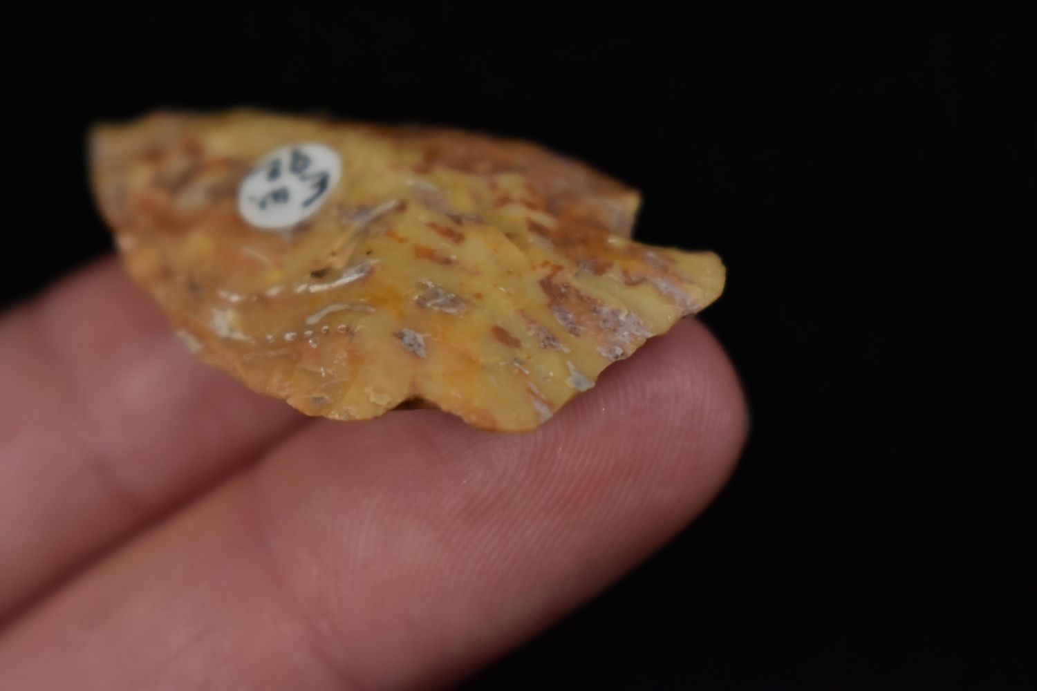 1 5/8" Archaic Point, great river stain, Found in Lima Lake, Adams County IL by Ed Wilcox. Native American Artifact