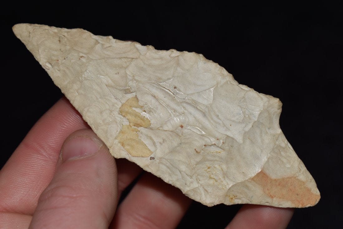 4 1/4" Afton, found in Lincoln Co., Missouri. Authentic Native American Arrowhead