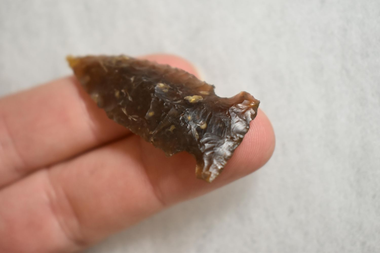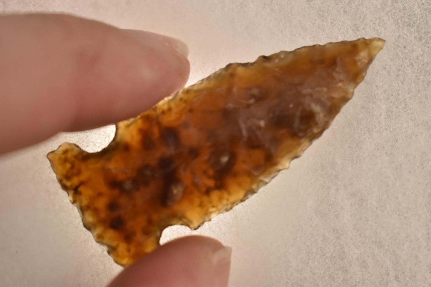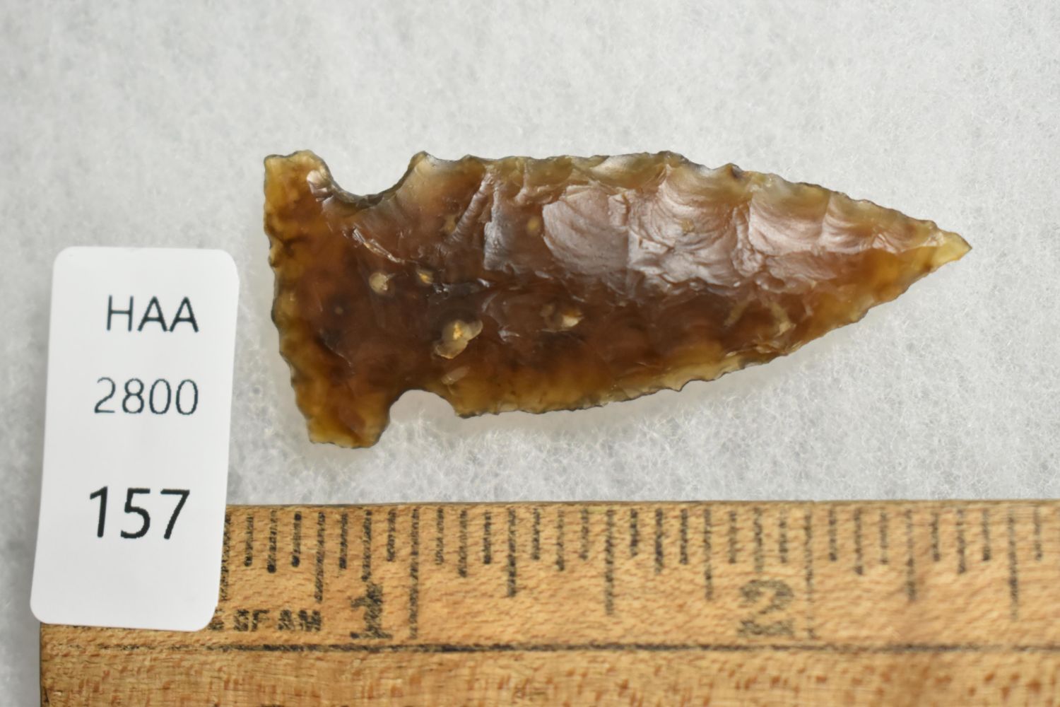 1 7/8" northern Point, made of knife river. EX Robert Walter. Native American Artifact