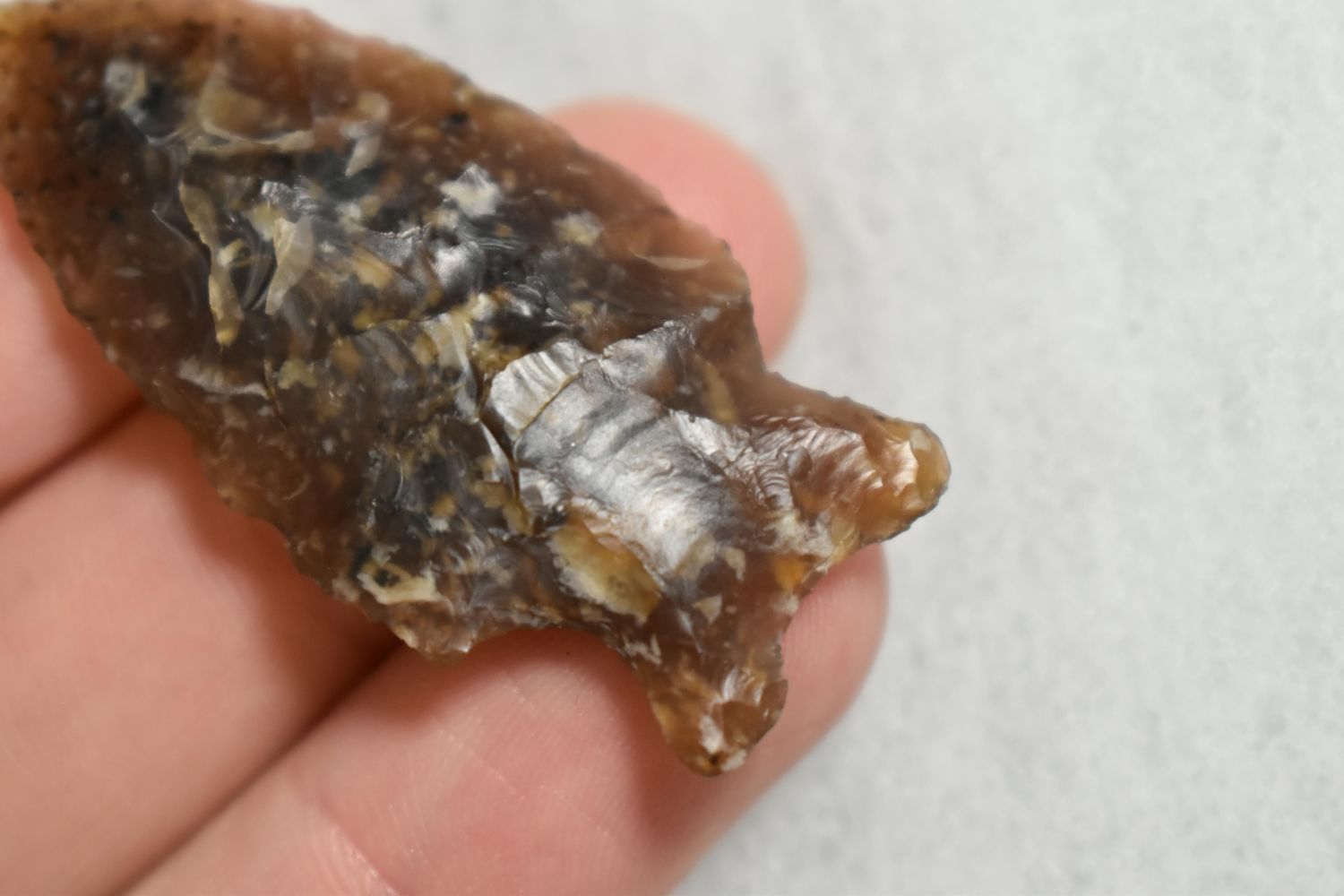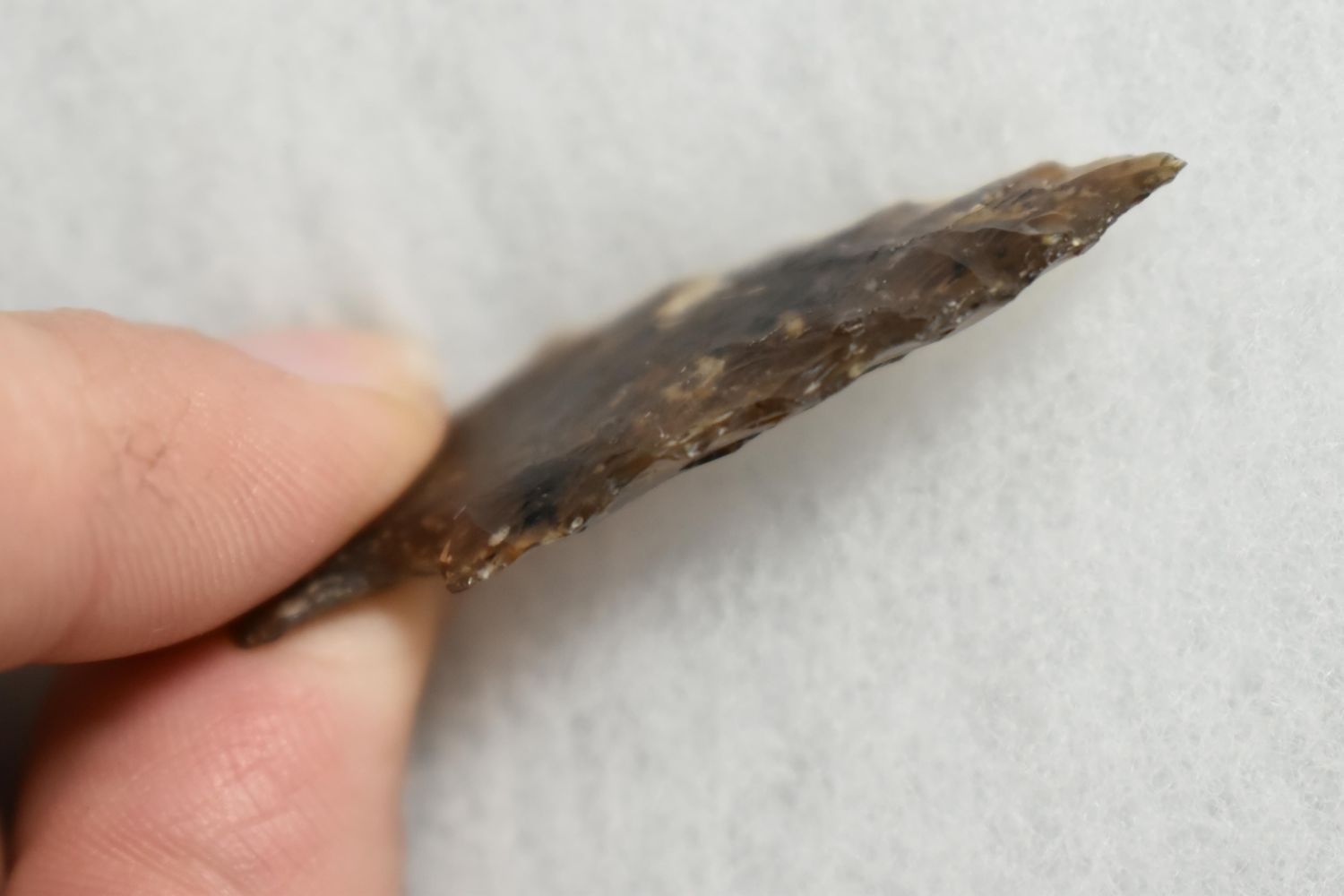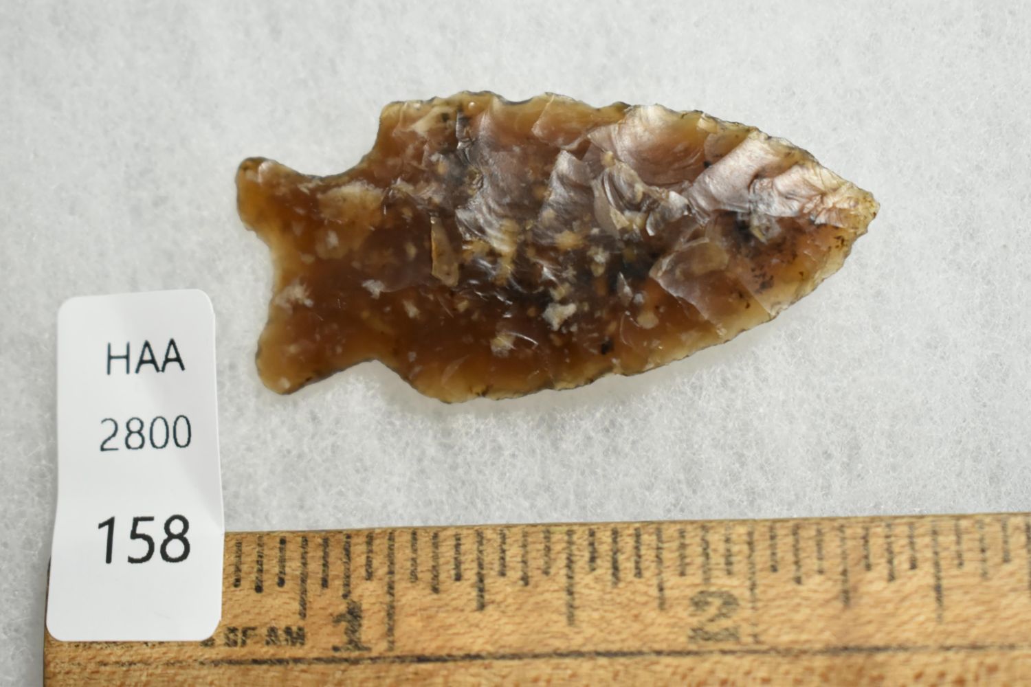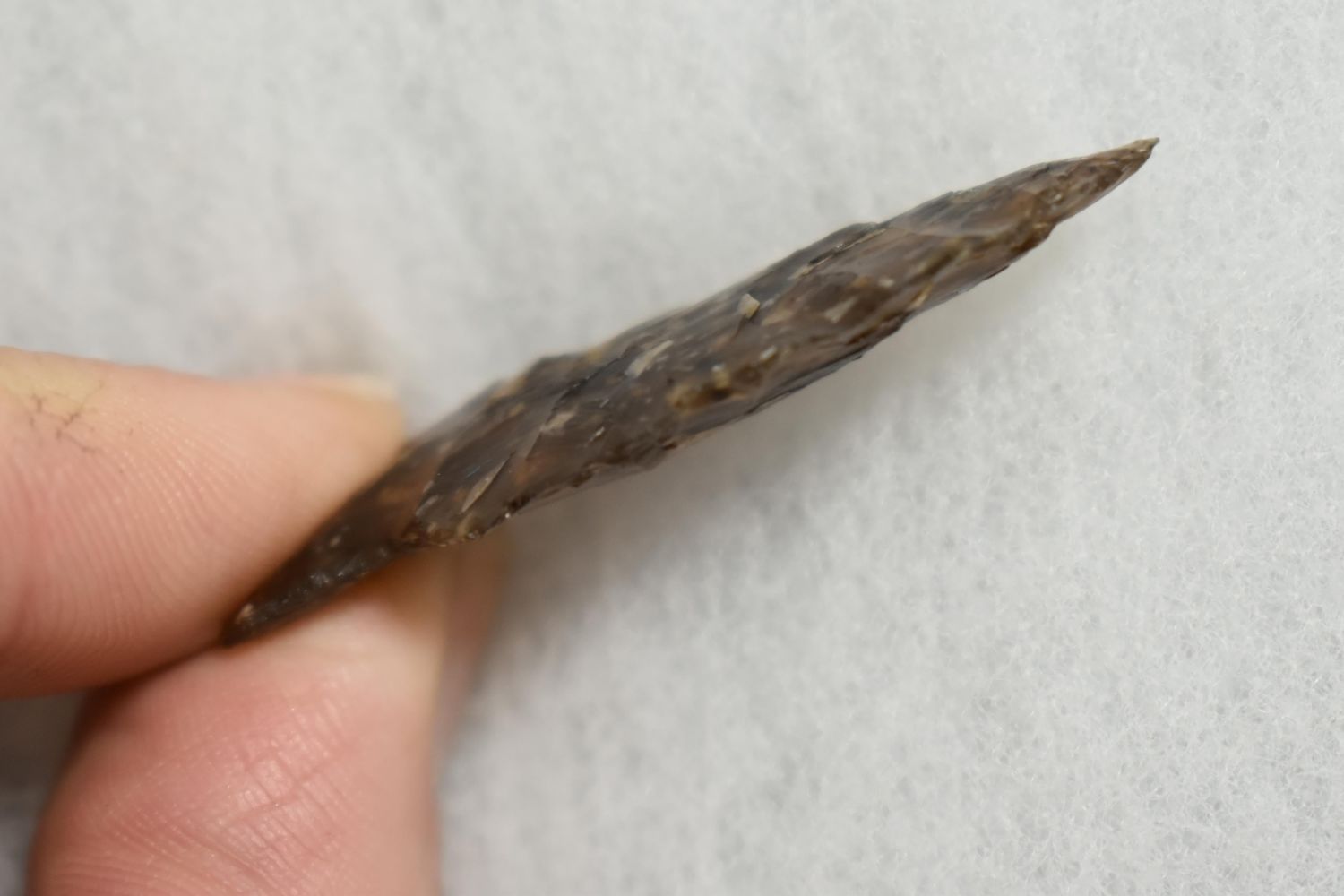 1 7/8" win dust Point, made of knife river. EX Robert Walter. Native American Artifact