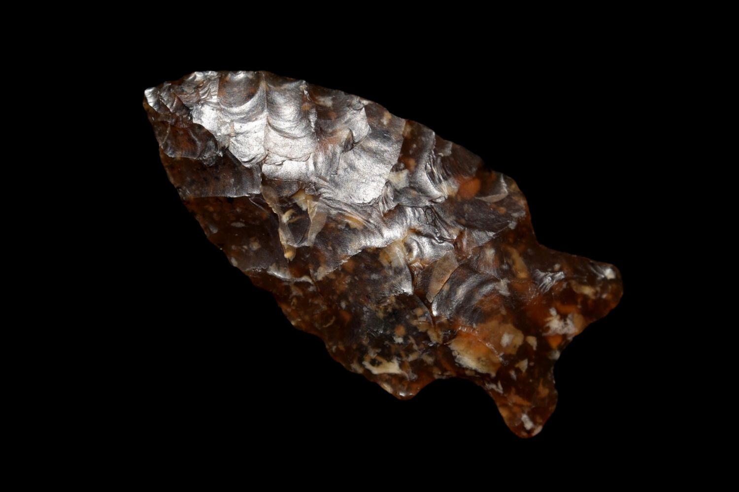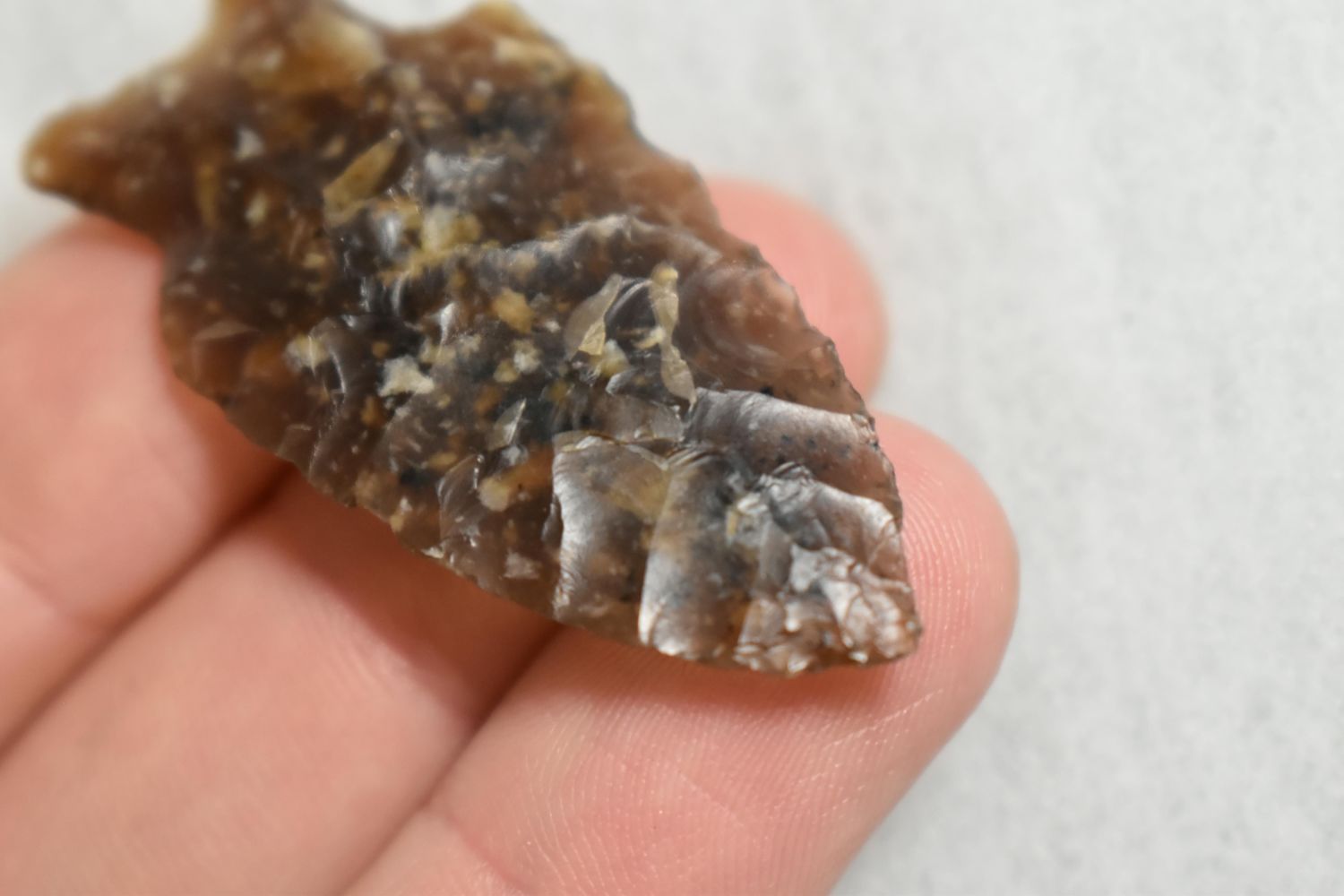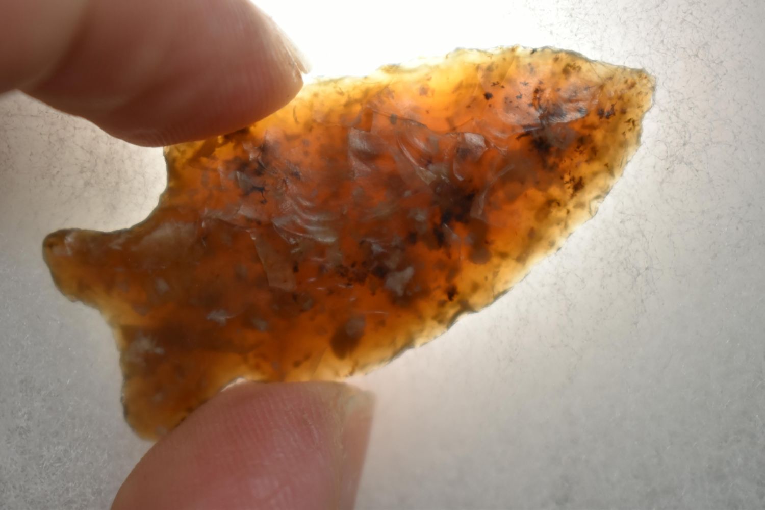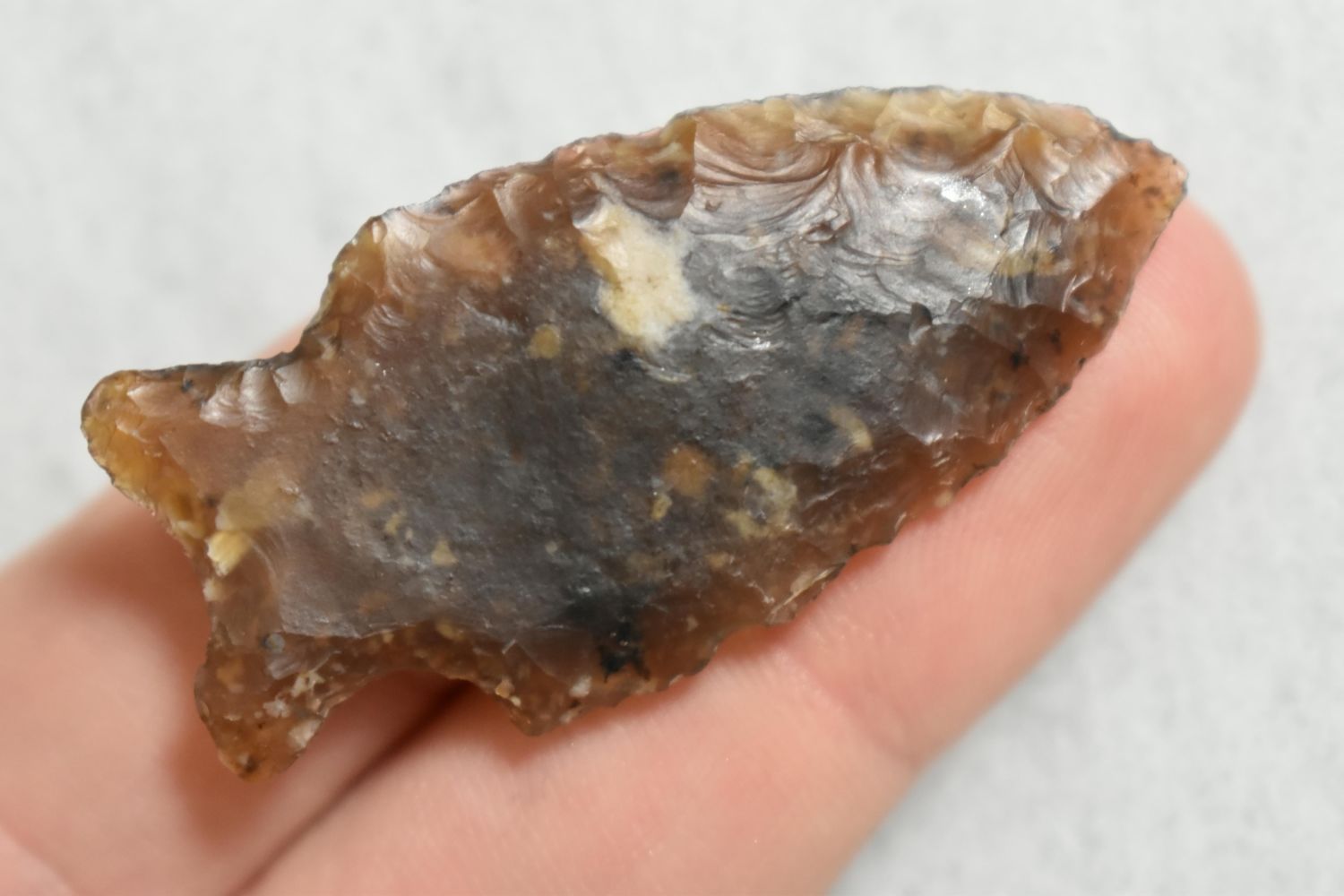 1 7/8" win dust Point, made of knife river. EX Robert Walter. Native American Artifact