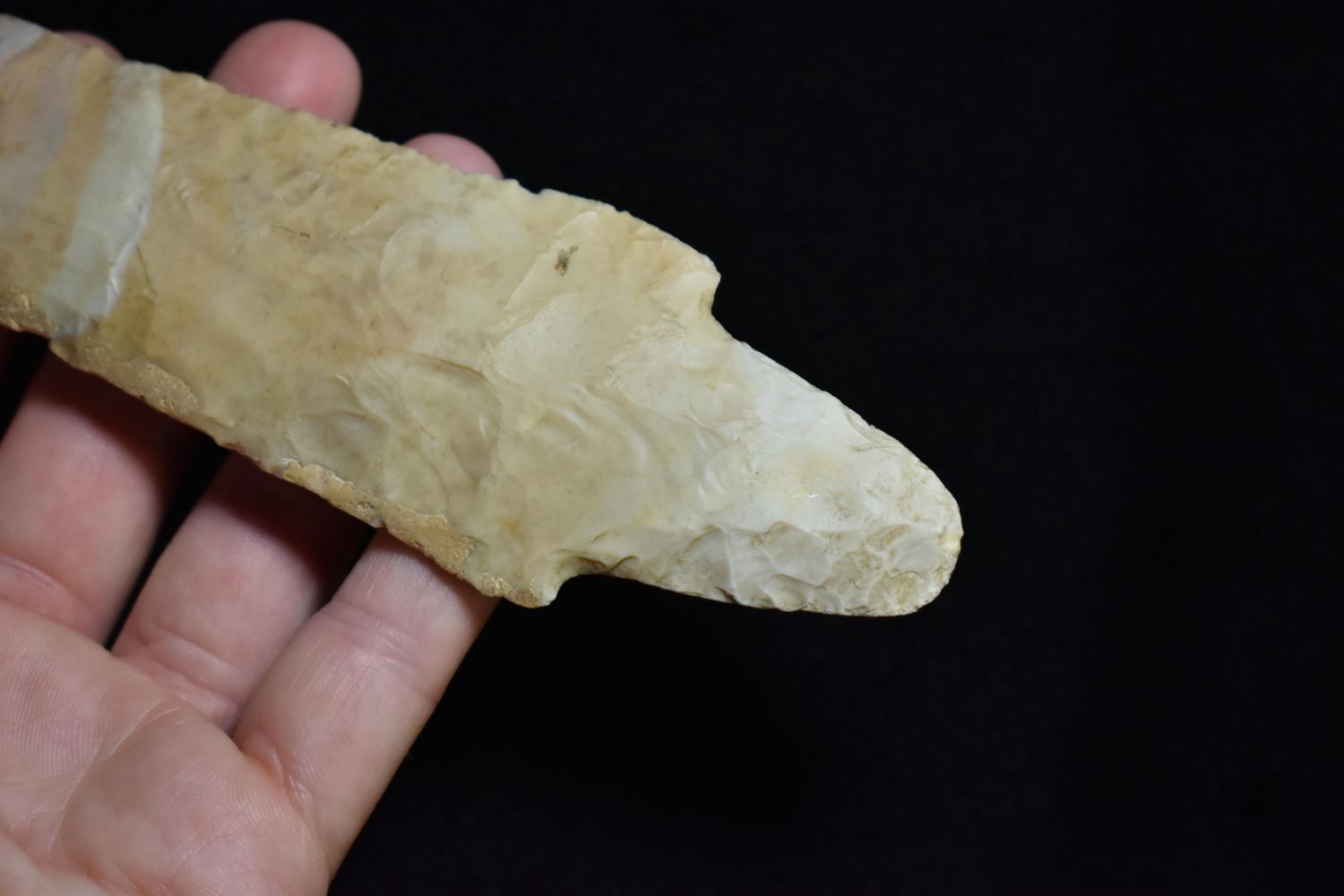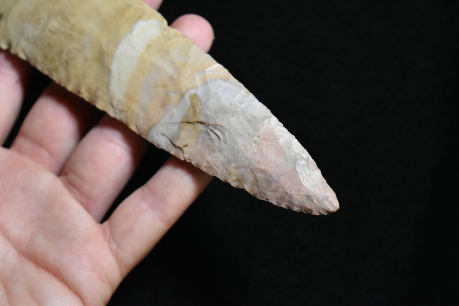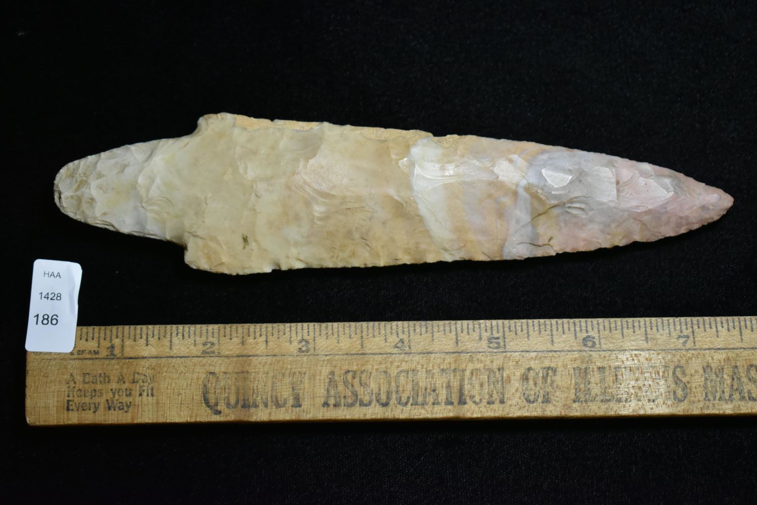 7 1/4" Adena Point Found in Missouri. Light restoration to one side. EX Floyd Ritter. Native American Artifact