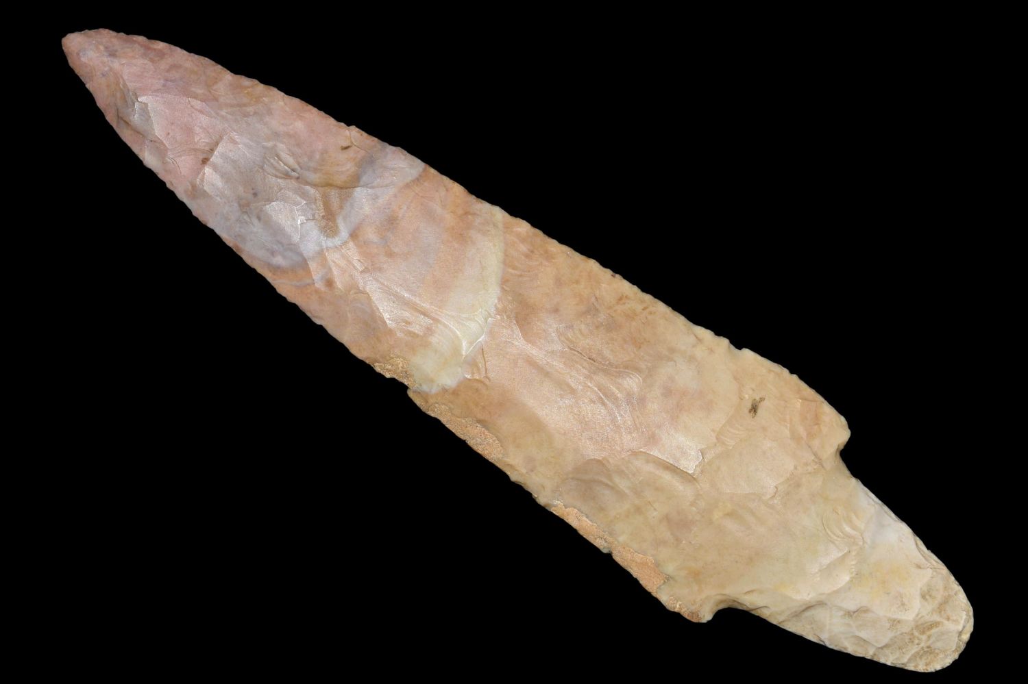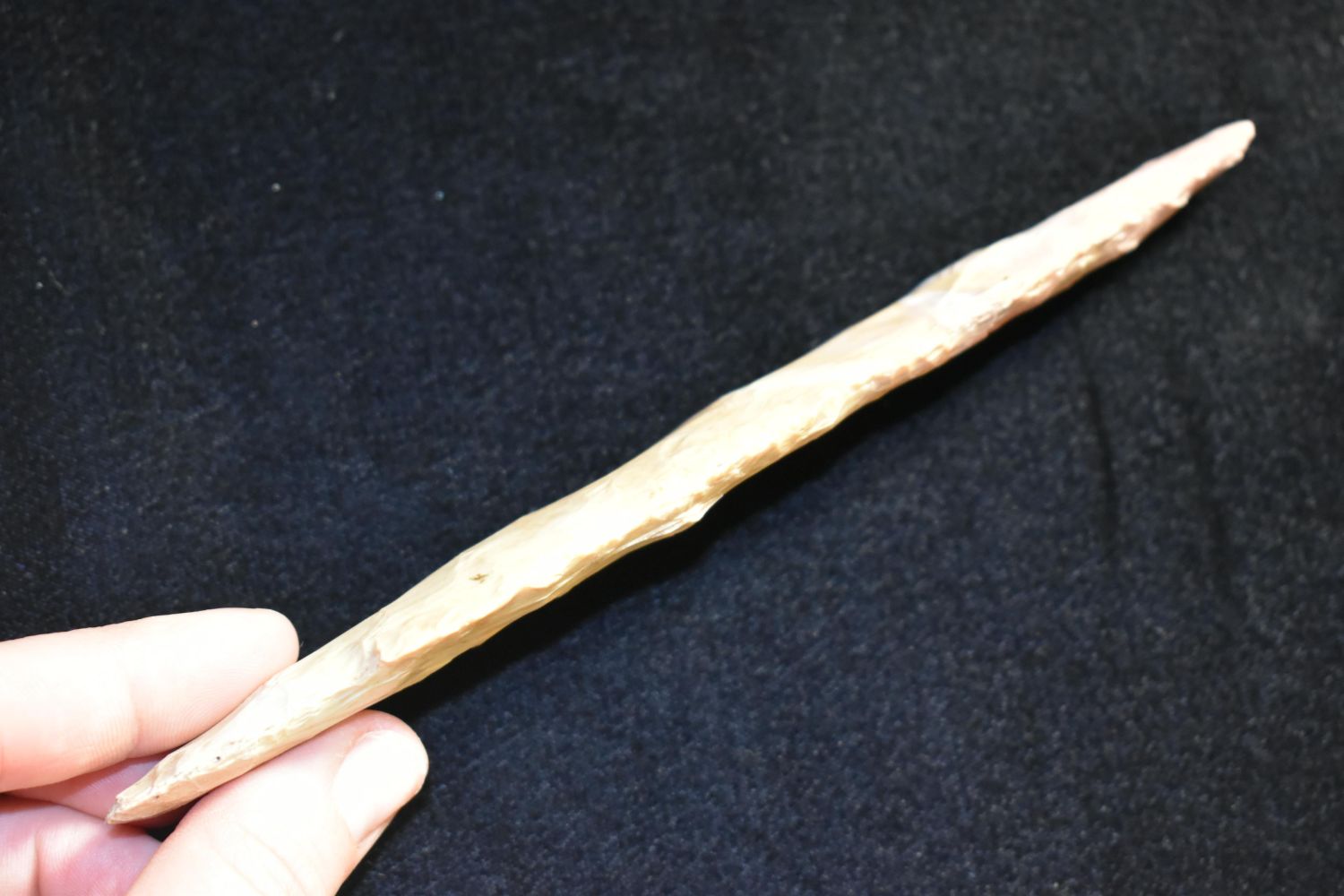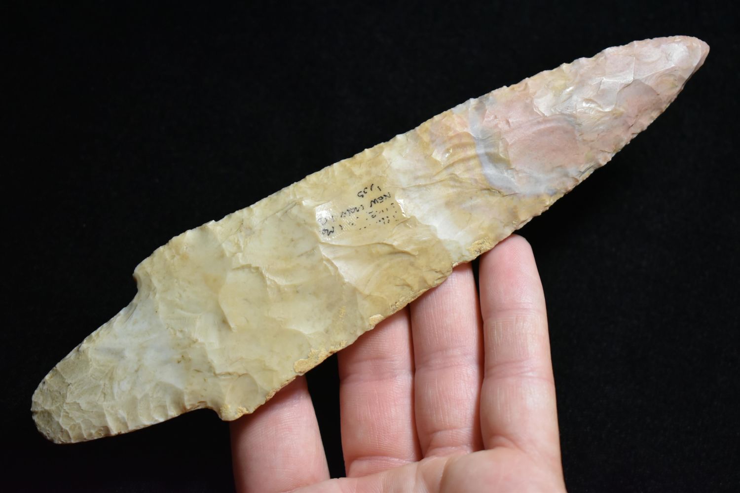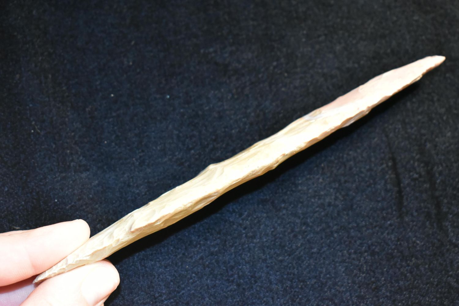 7 1/4" Adena Point Found in Missouri. Light restoration to one side. EX Floyd Ritter. Native American Artifact