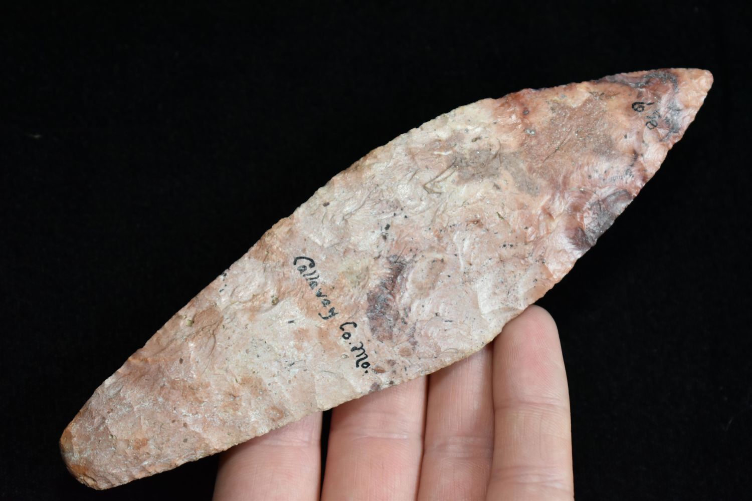 6 1/8" morse knife Found in Callaway Co., Missouri. EX Floyd Ritter. Native American Artifact