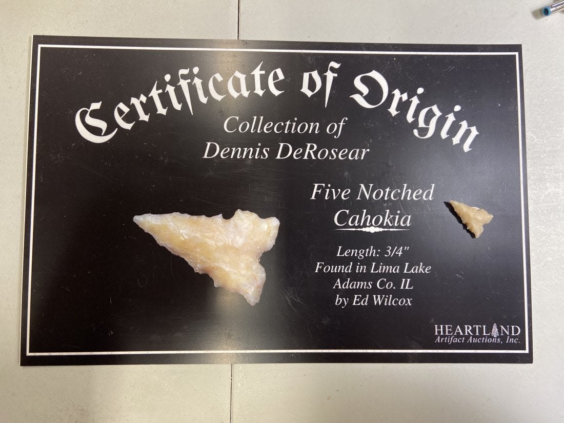 3/4" five Notched Cahokia Point Found in Lima Lake, Adams County IL by Ed Wilcox. Native American Artifact