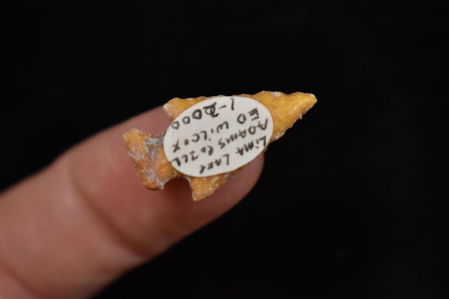7/8" Bird Point Found in Lima Lake, Adams County IL by Ed Wilcox in 2000. Native American Artifact