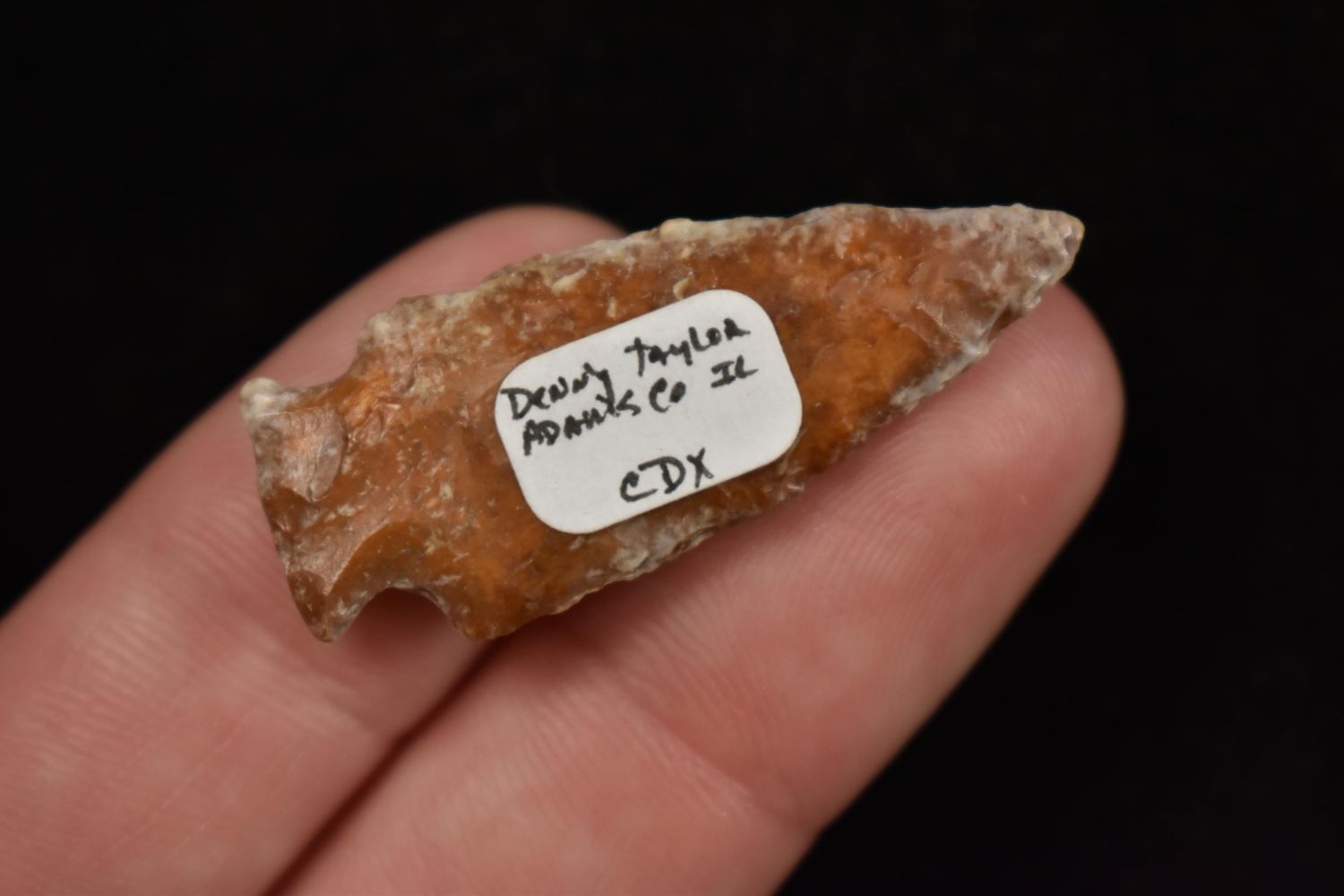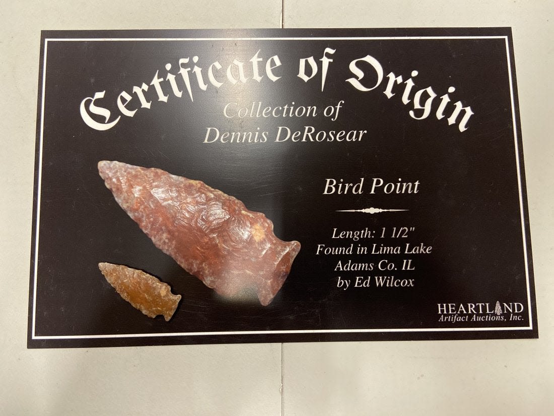 1 1/2" Bird Point Found in Lima Lake, Adams County IL by Ed Wilcox. Native American Artifact