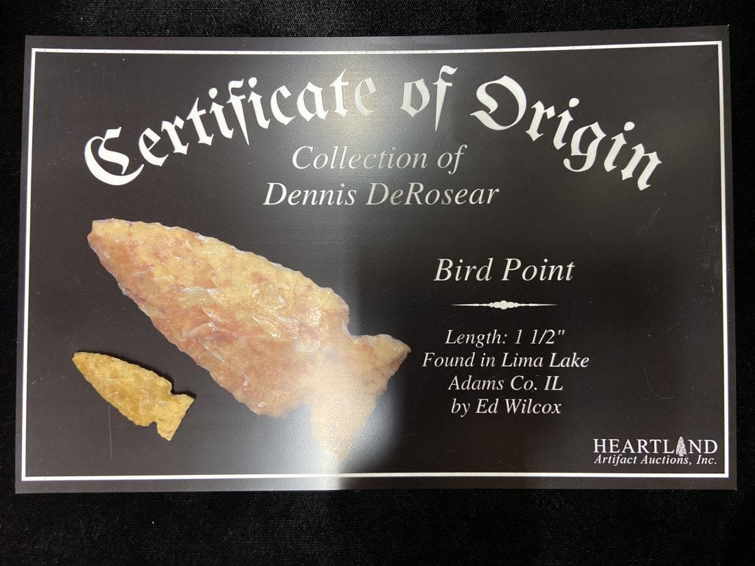 1 1/2" Bird Point Found in Lima Lake, Adams County IL