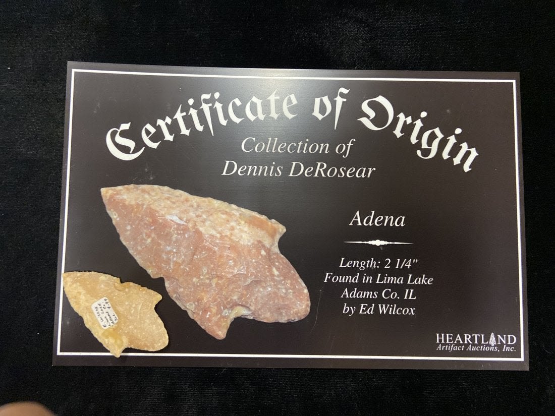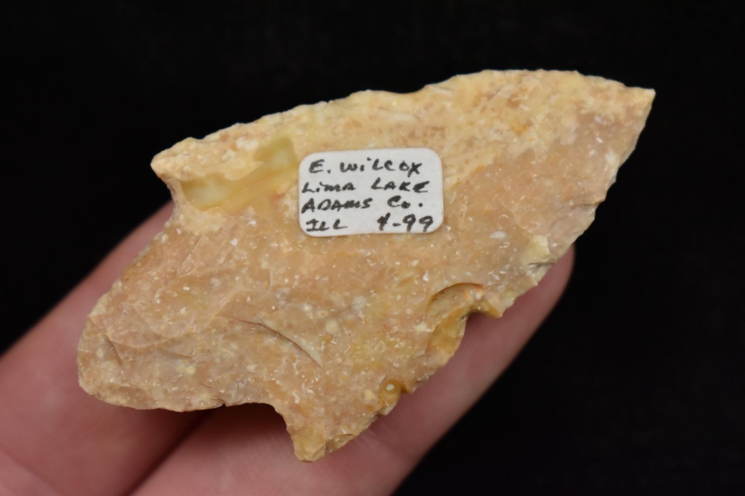 2 1/4" Adena Point Found in Lima Lake, Adams County IL by Ed Wilcox in 1999. Native American Artifact