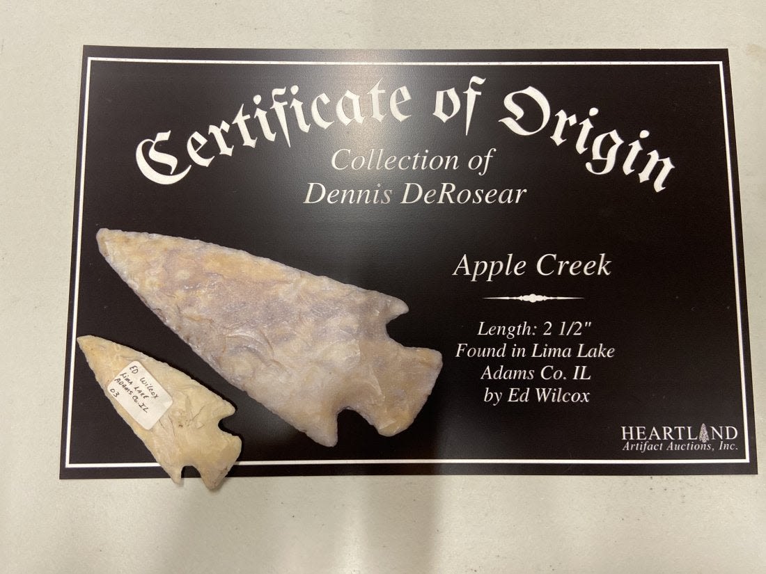 2 1/2" Apple Creek Point Found in Lima Lake, Adams County IL by Rick Reiter in 2003. Native American Artifact