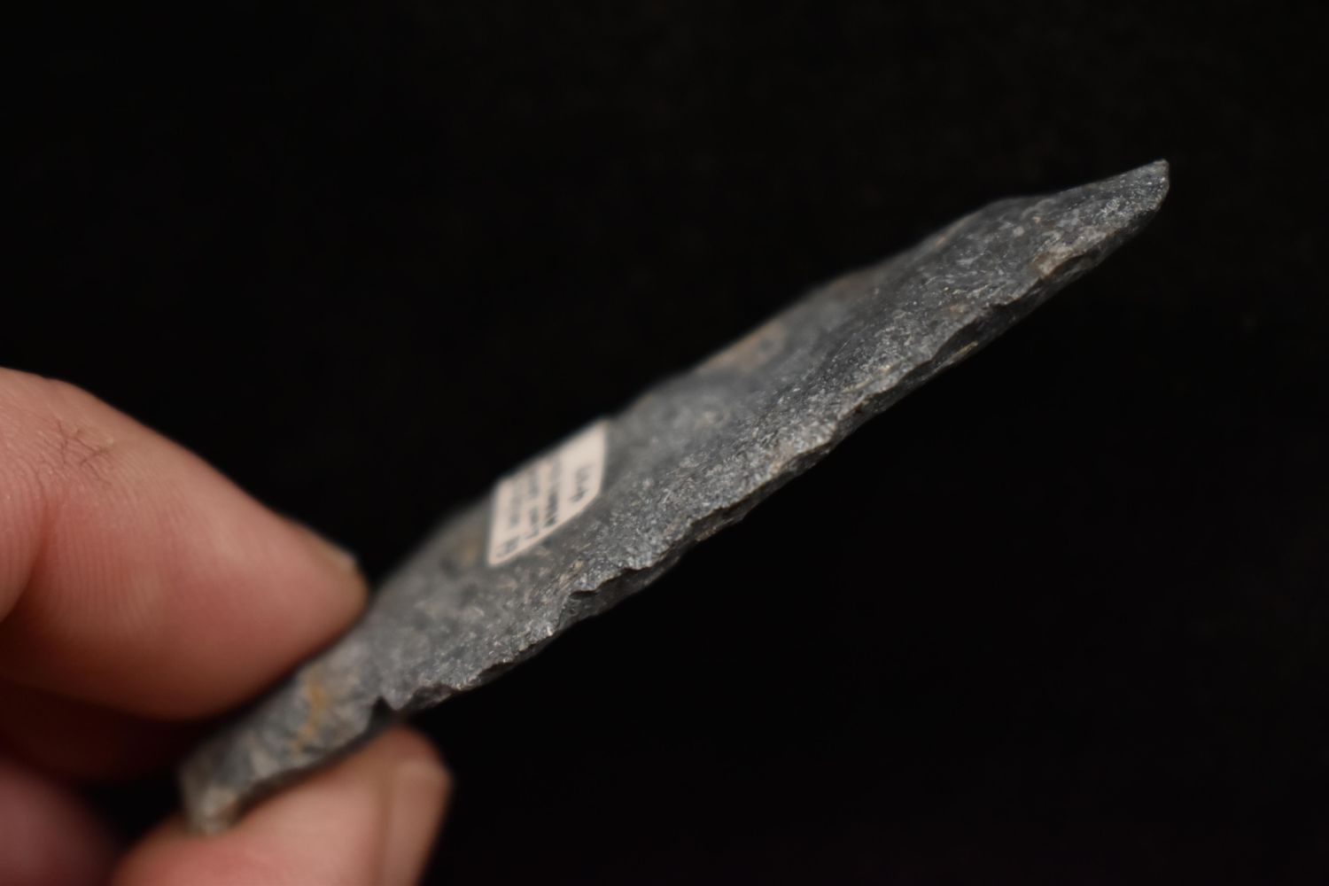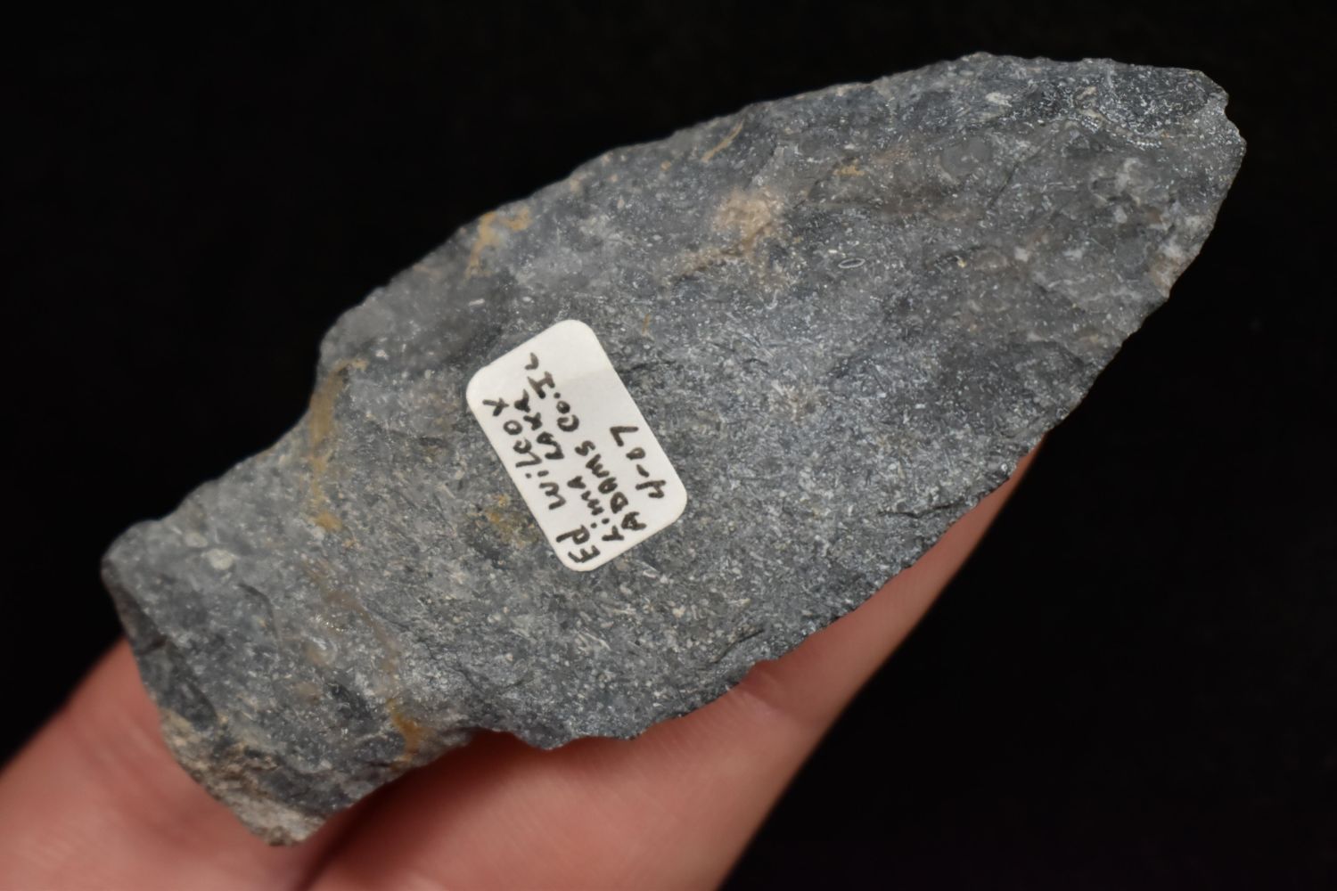 2 3/4" squared Stem Point Found in Lima Lake, Adams County IL by Ed Wilcox in 2007. Native American Artifact