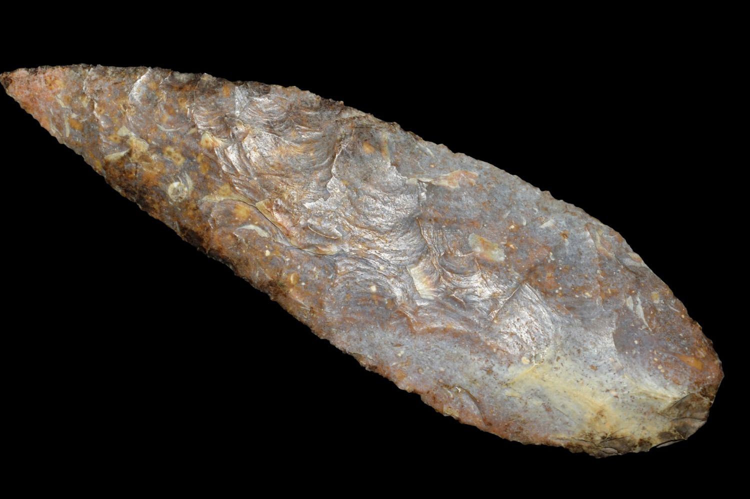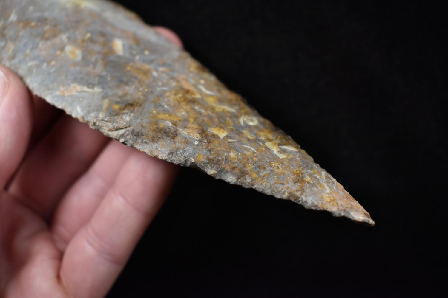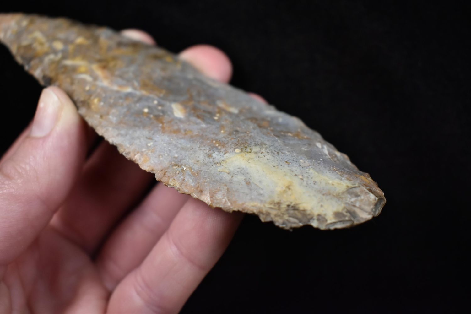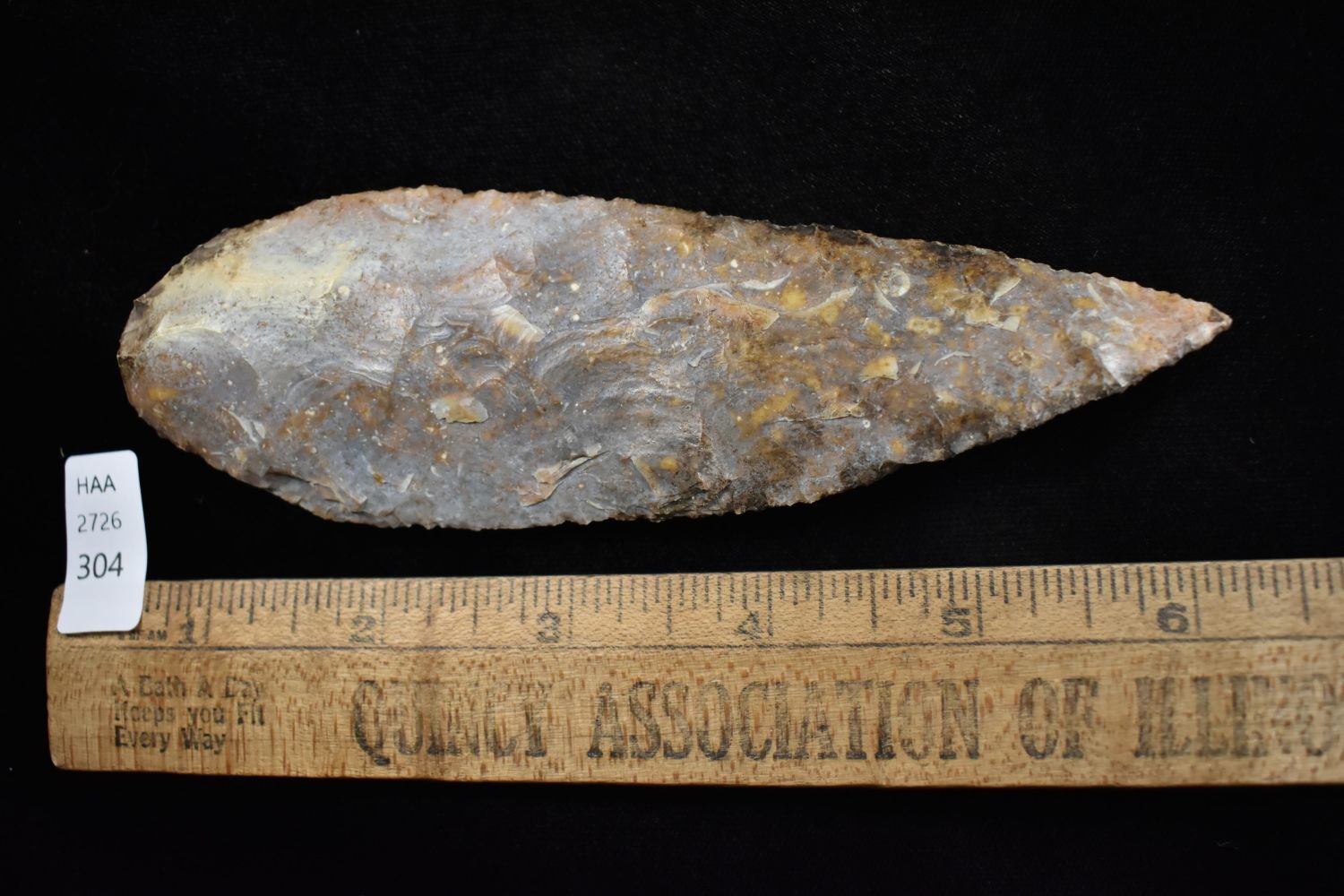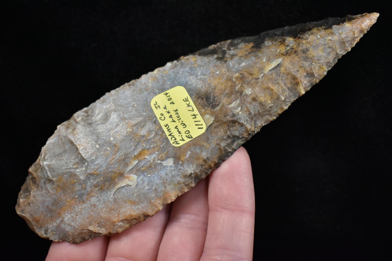5 1/2" leaf Blade Found in Lima Lake, Adams County IL by Ed Wilcox in 2014. Native American Artifact