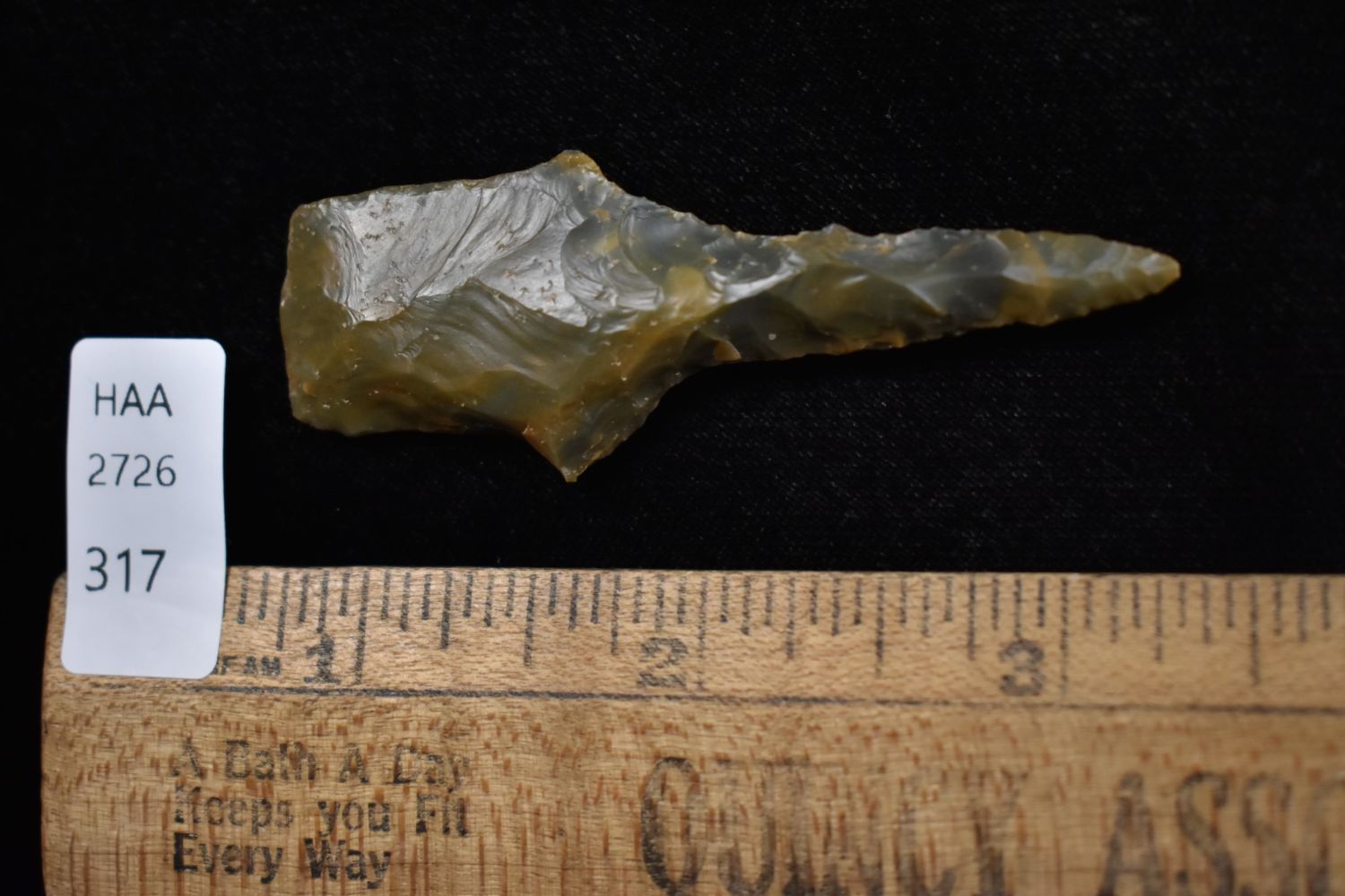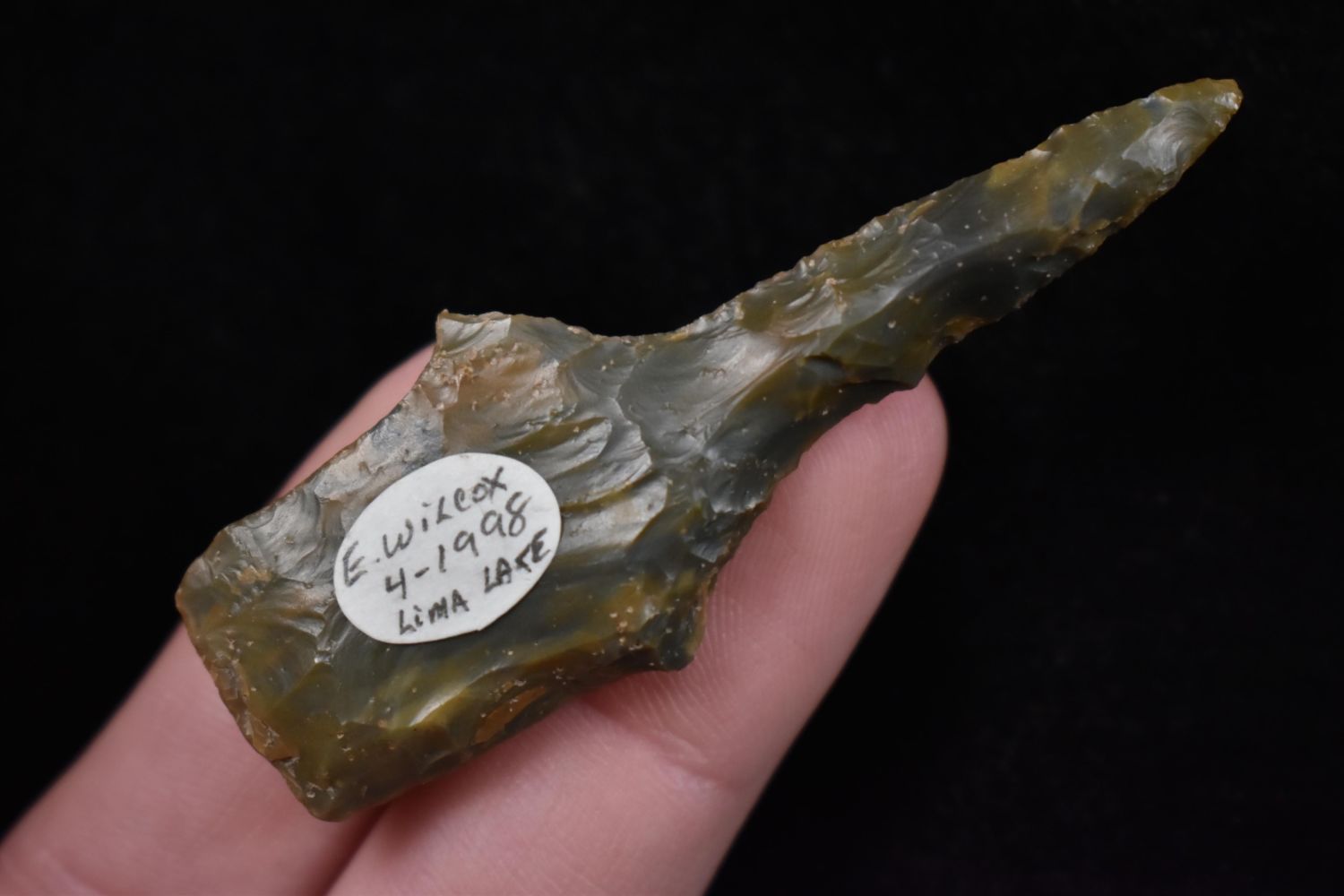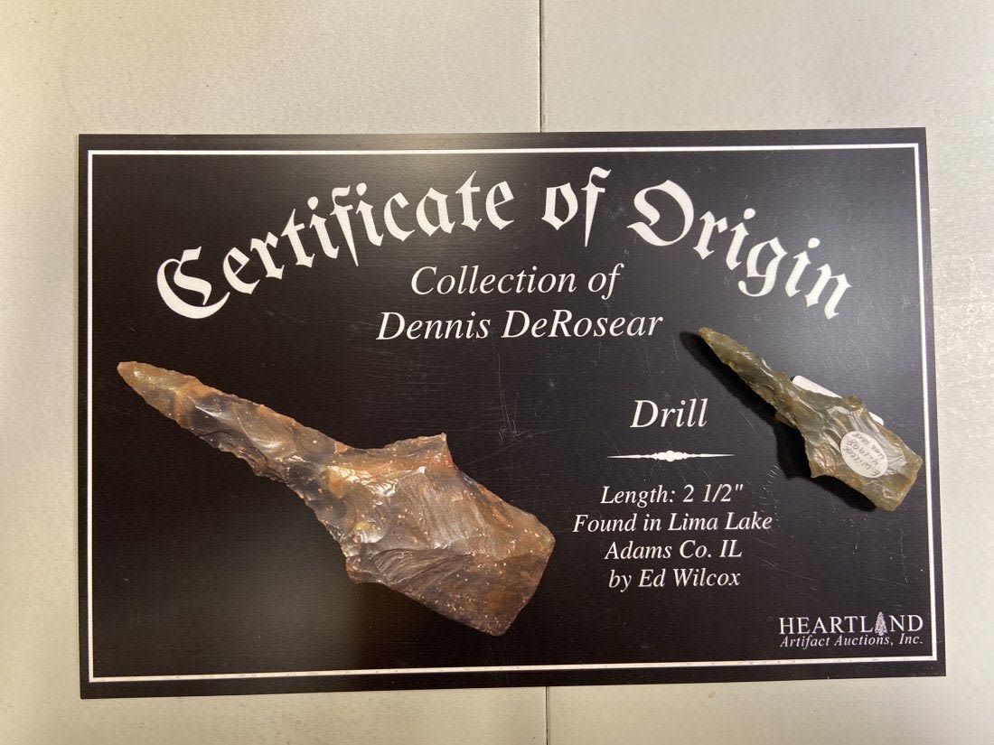2 1/2" drill Found in Lima Lake, Adams County IL by Ed Wilcox in 1998. Native American Artifact