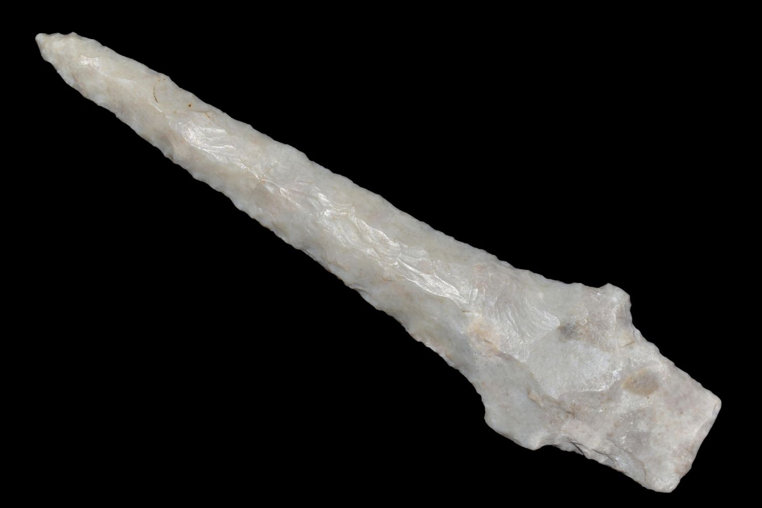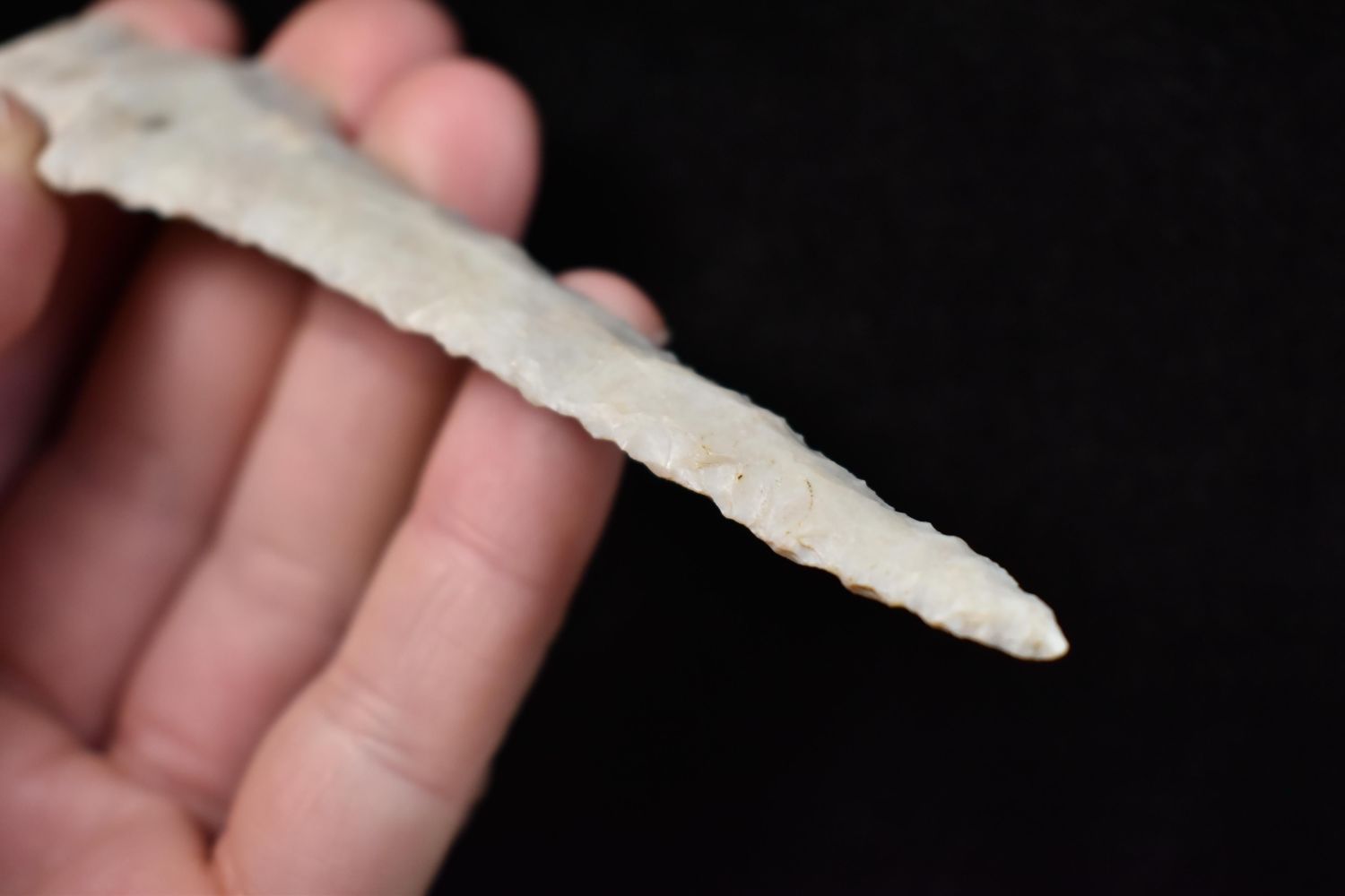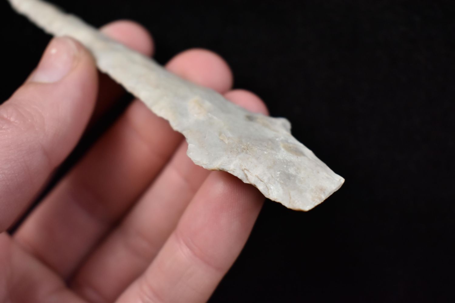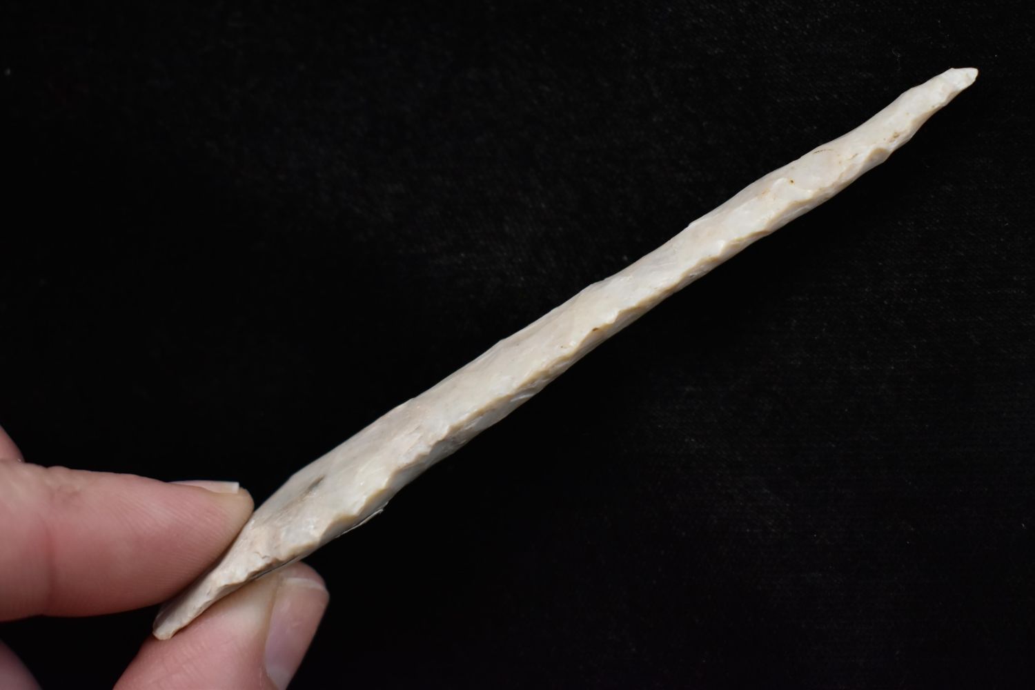4 1/4" drill, broken and reglued, Found in Lima Lake, Adams County IL by Ed Wilcox in 1992. Native American Artifact
