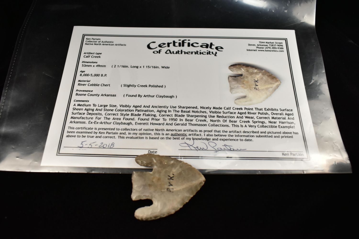 2 1/16" calf creek, Partain COA, Found in Boone County, Arkansas. Native American Artifact