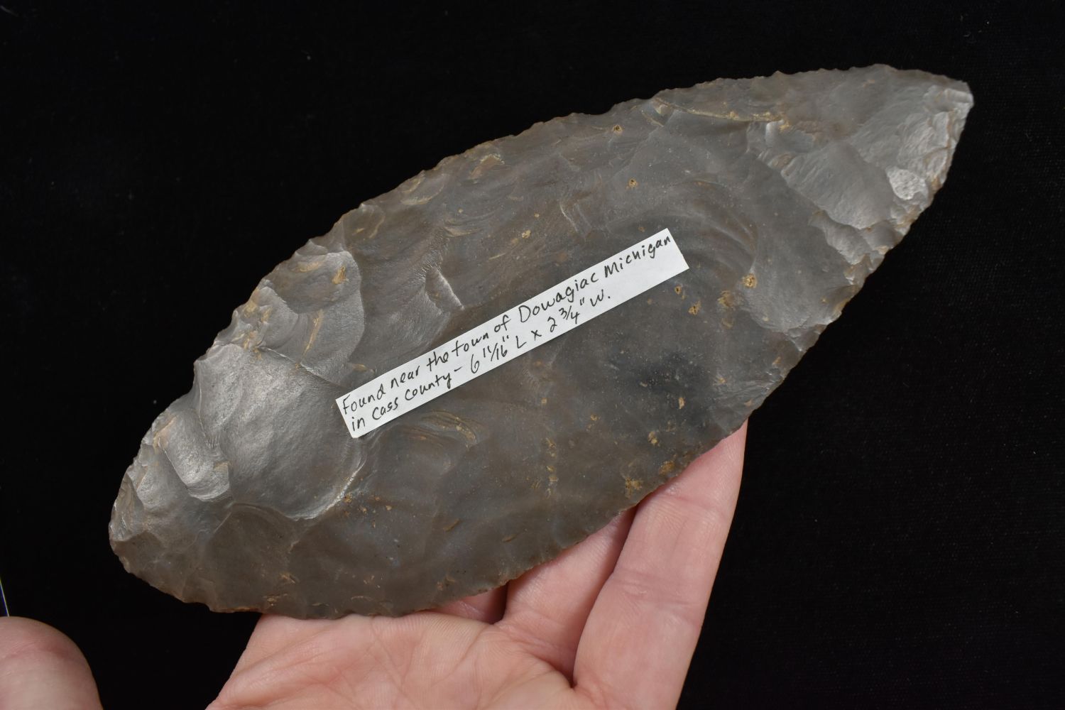 6 3/4" leaf Cache Blade Found in Cass Co., Michigan. Native American Artifact