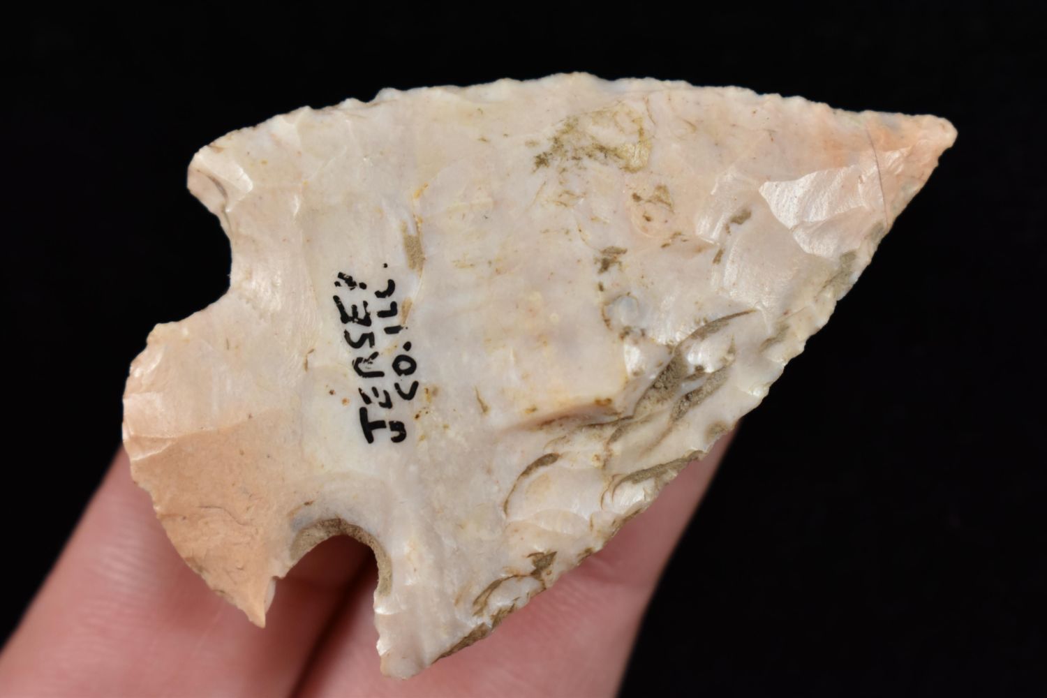 2 1/8" Snyder Point Found in Jersey Co., Illinois. EX Dwayne Pruitt. Native American Artifact