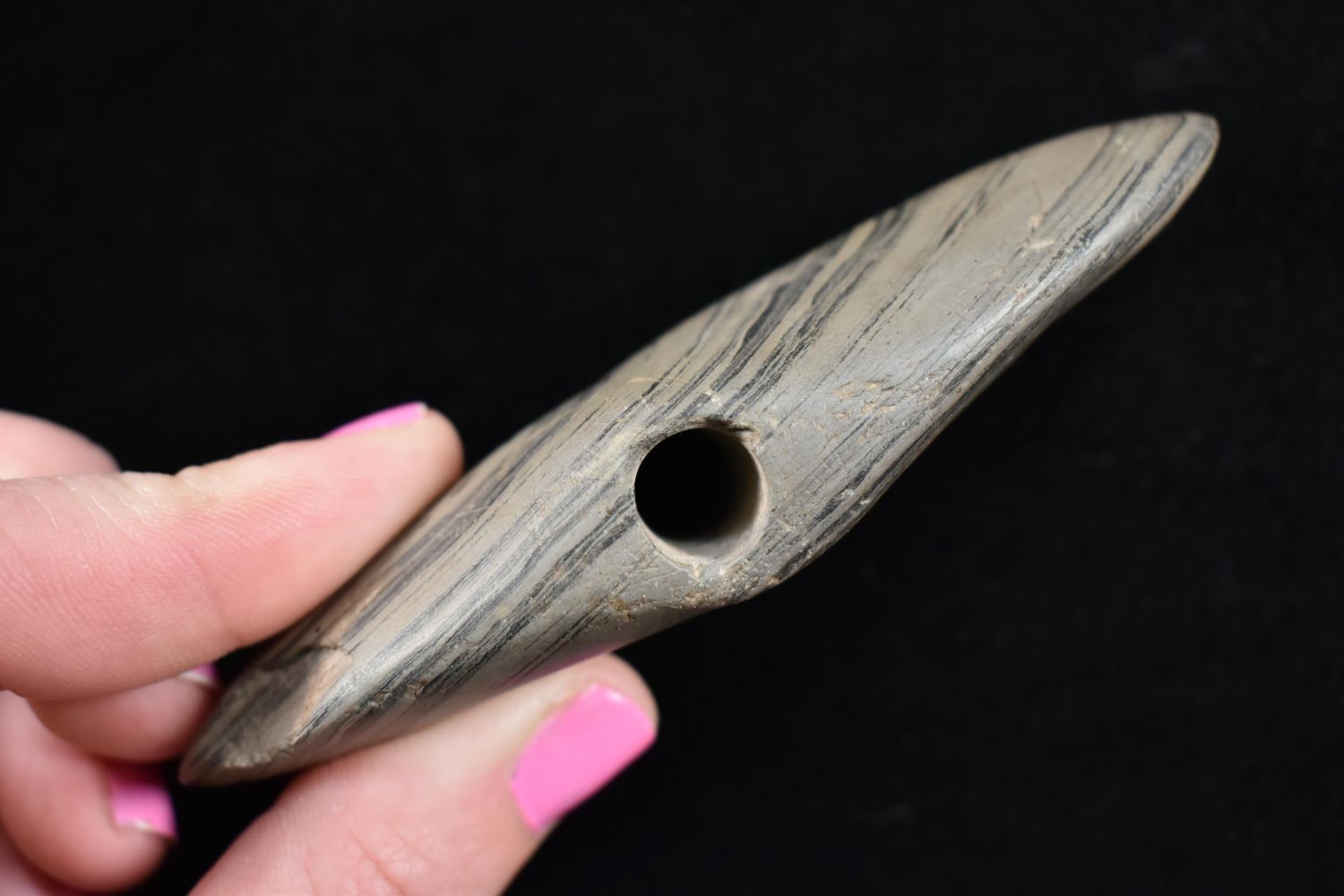 4 1/4" Slate Banner Stone Found in Southwest Michigan. Native American Artifact