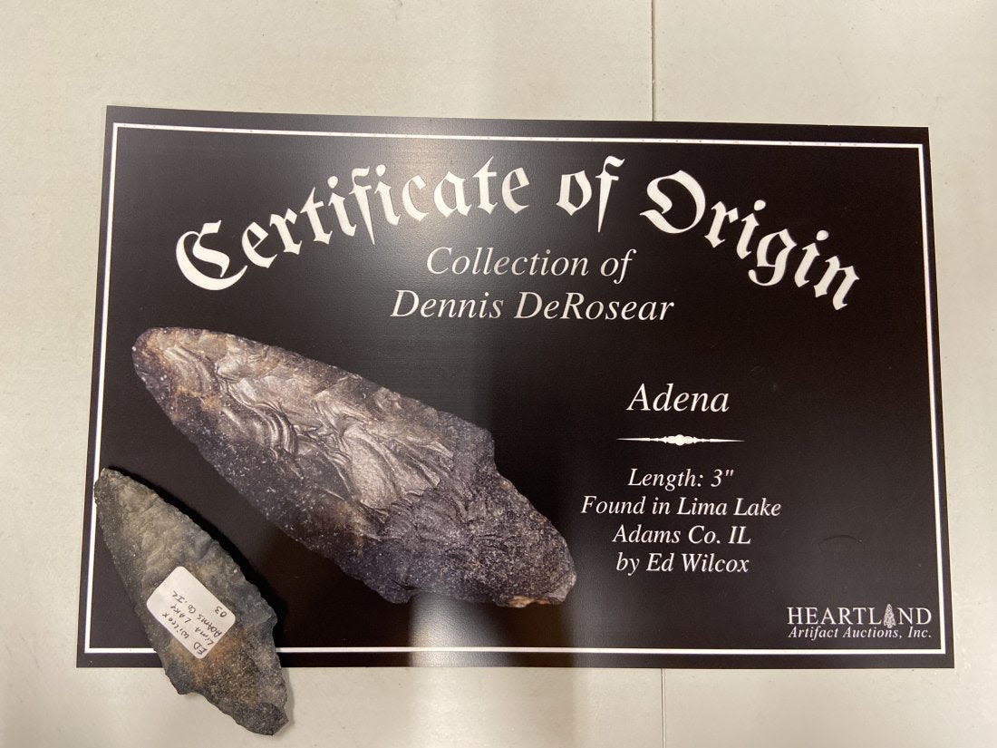3" Adena Point Found in Lima Lake, Adams County IL by