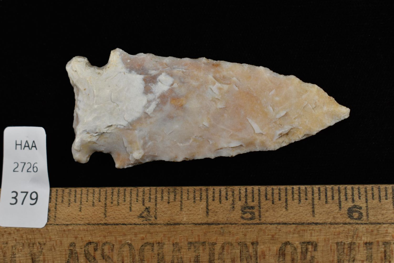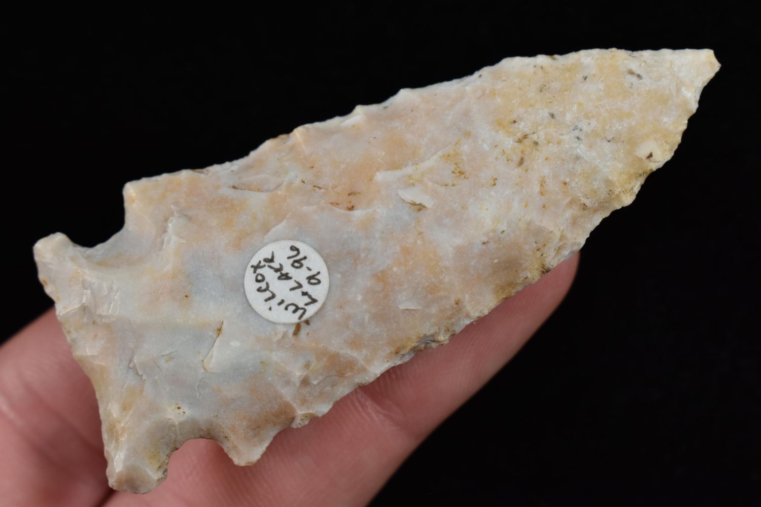 2 3/4" Side Notched Point Found in Lima Lake, Adams County IL by Ed Wilcox in 1996. Native American Artifact