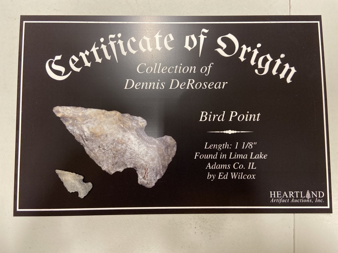 1 1/8" Bird Point Found in Lima Lake, Adams County IL