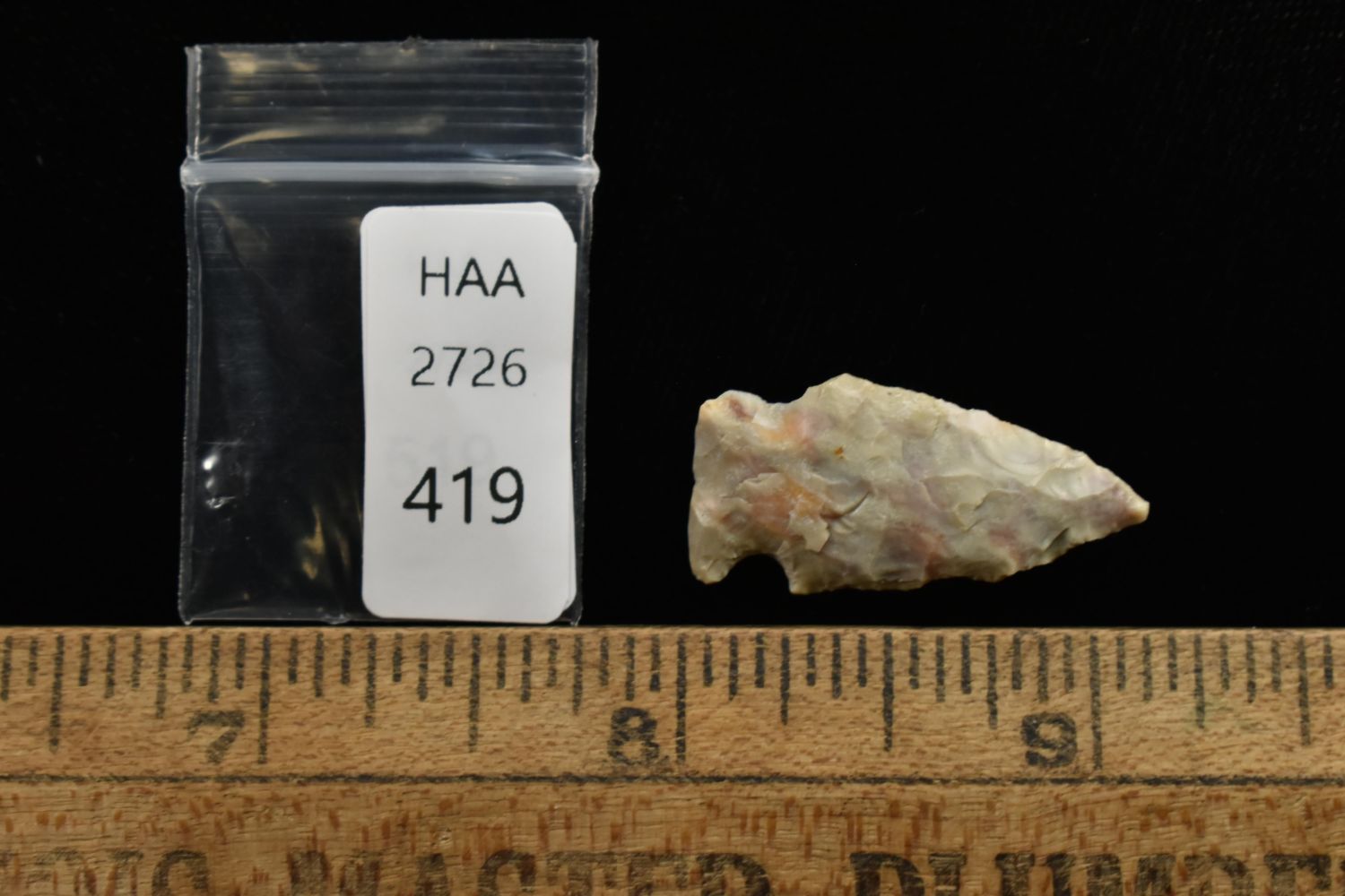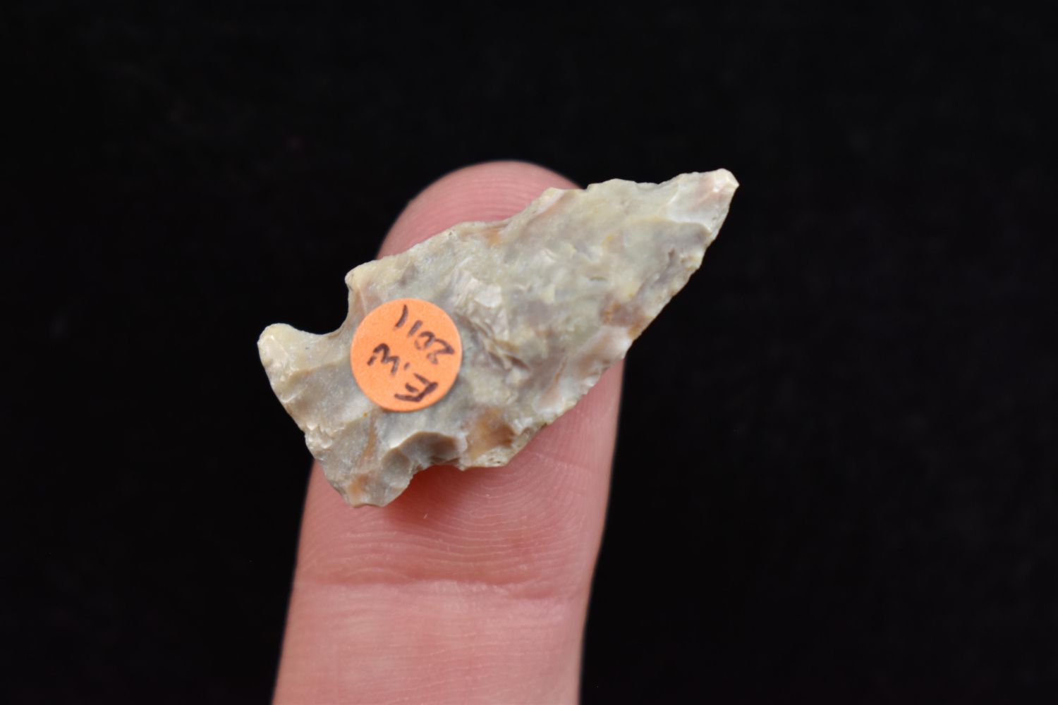 1 1/8" Bird Point Found in Lima Lake, Adams County IL by Ed Wilcox in 2011. Native American Artifact