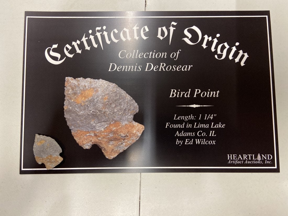 1 1/4" Bird Point Found in Lima Lake, Adams County IL by Ed Wilcox. Native American Artifact