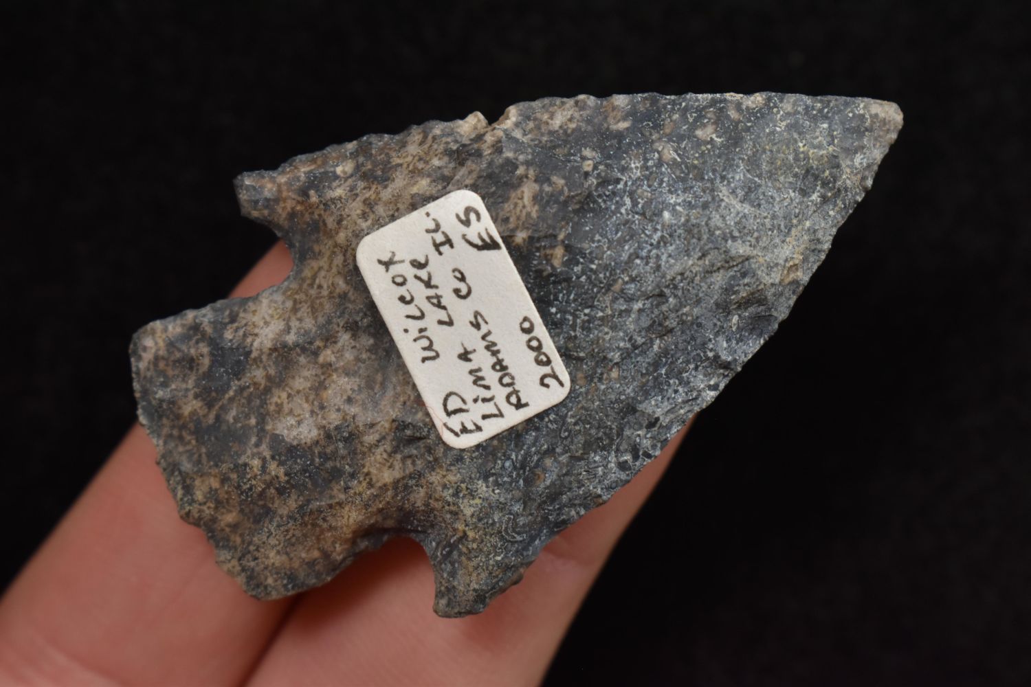 2 1/4" Apple Creek Point Found in Lima Lake, Adams County IL by Ed Wilcox in 2000. Native American Artifact