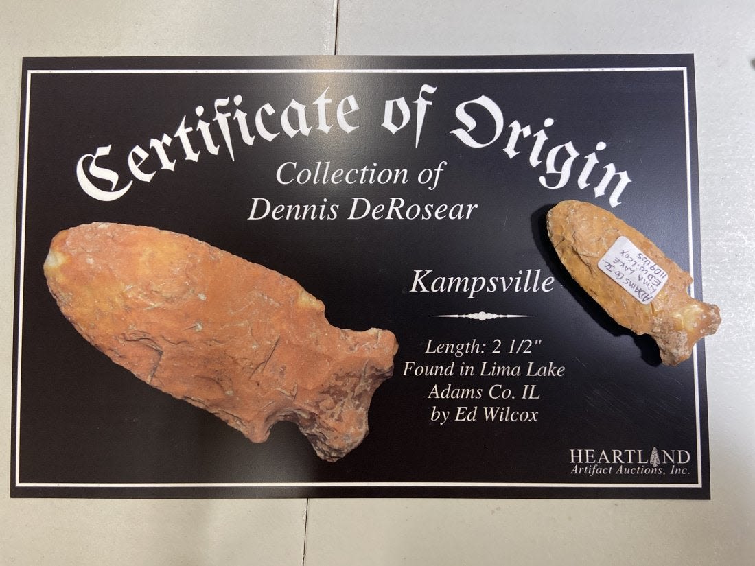 2 1/2" Kampsville Point Found in Lima Lake, Adams County IL by Ed Wilcox. Native American Artifact