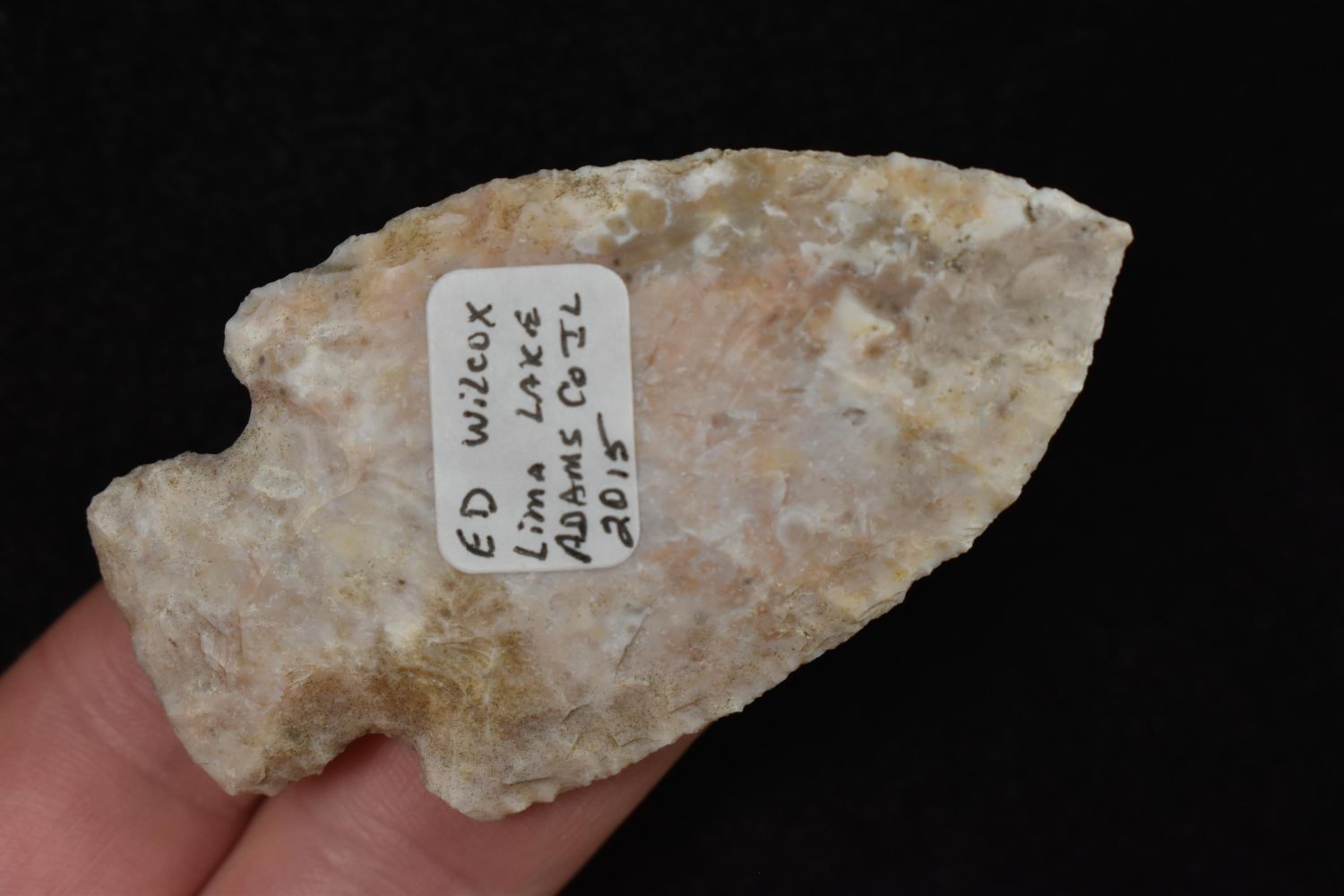 2 3/4" Rice Lobbed Point Found in Lima Lake, Adams County IL by Ed Wilcox in 2015. Native American Artifact