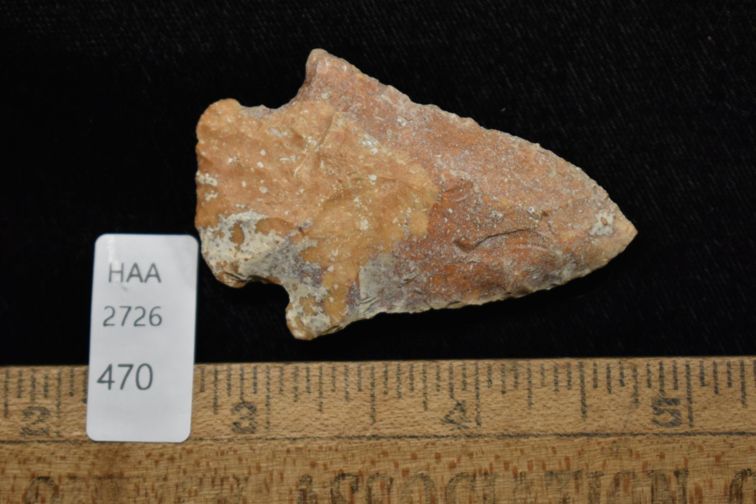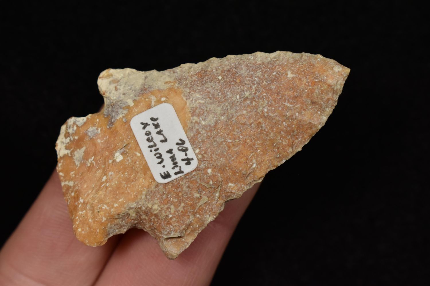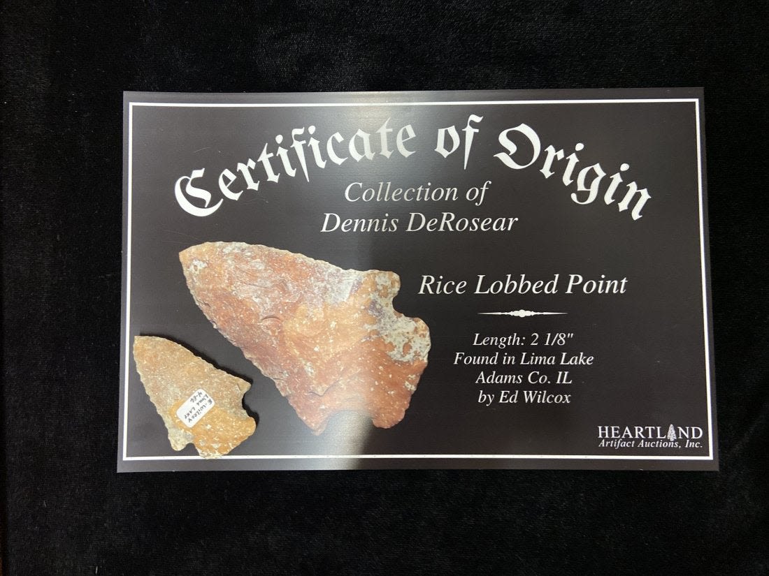 2 1/8" Rice Lobbed Point Found in Lima Lake, Adams County IL by Ed Wilcox in 2006. Native American Artifact
