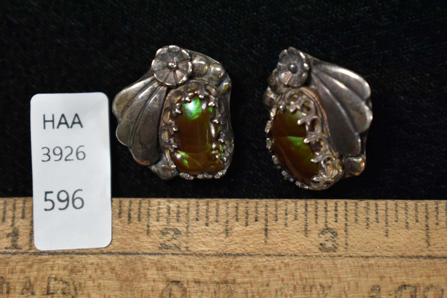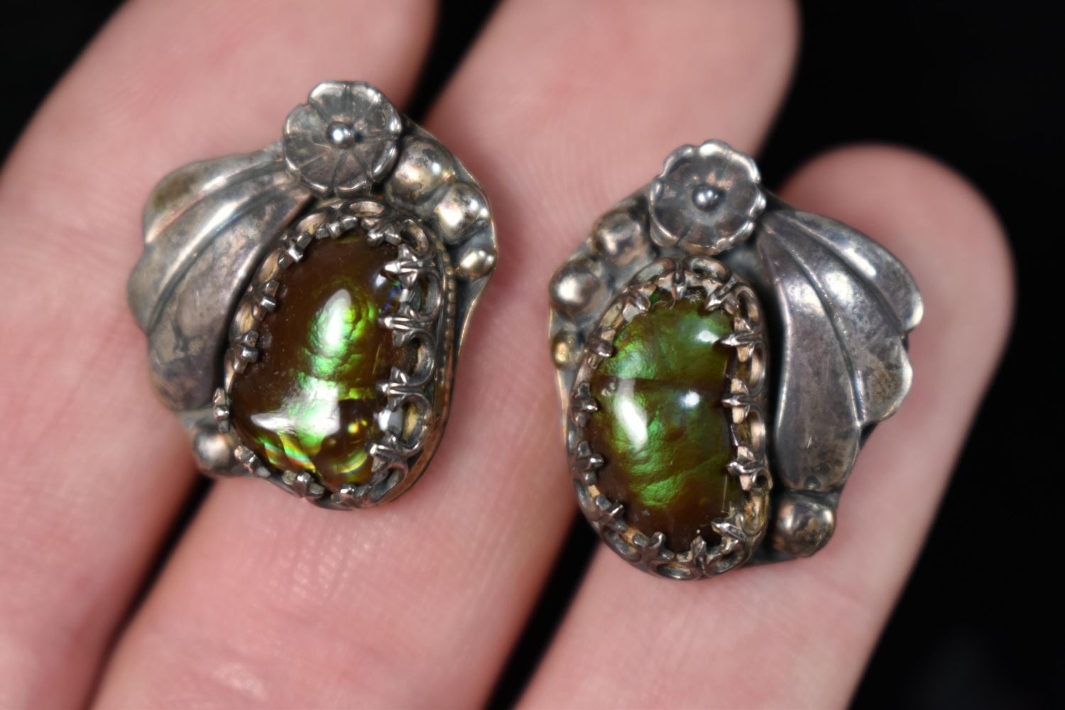 Signed Vintage Fire Agate Sterling Silver Pair of
