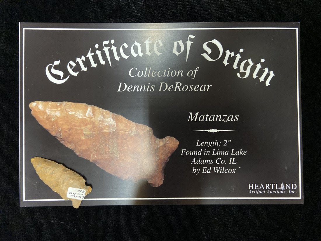 2" Matanzas Point Found in Lima Lake, Adams County IL by Ed Wilcox in 2006. Native American Artifact