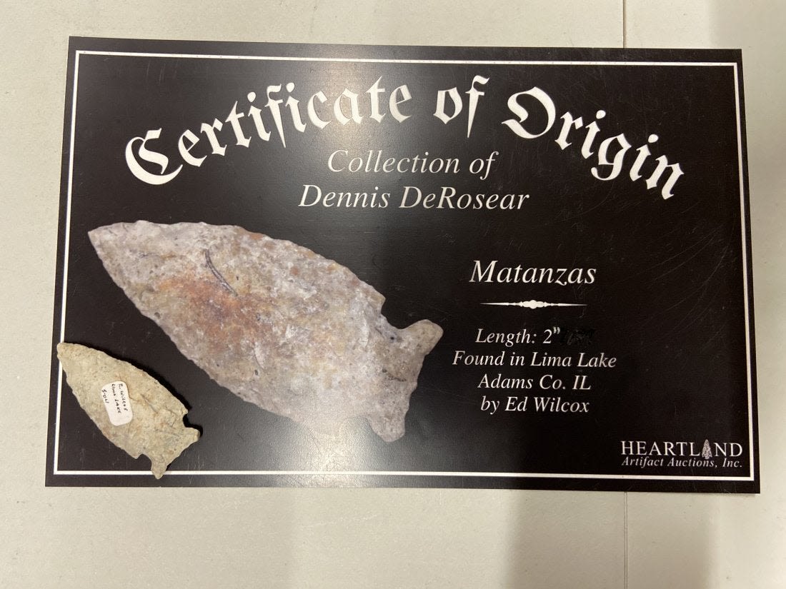 2" Matanzas Point Found in Lima Lake, Adams County IL by Ed Wilcox in 2004. Native American Artifact