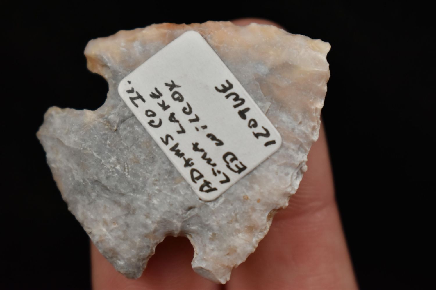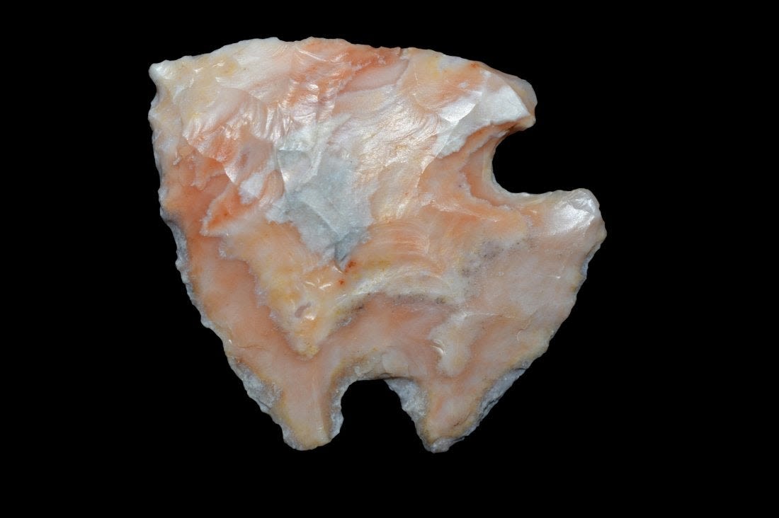 1 1/2" Colorful Snyder Point Found in Lima Lake, Adams County IL by Ed Wilcox in 2009. Native American Artifact