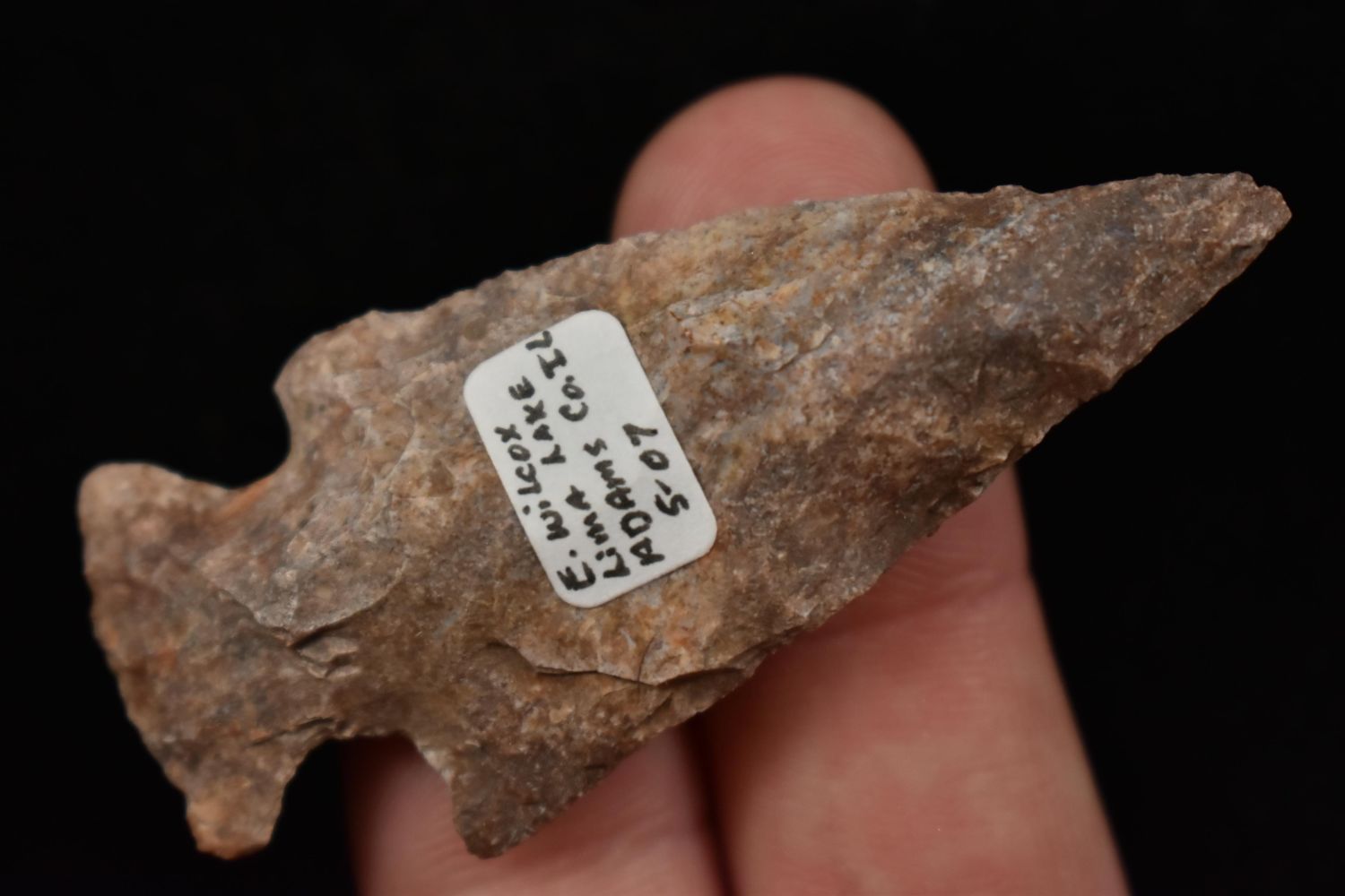 2 5/8" Apple Creek Point Found in Lima Lake, Adams County IL by Ed Wilcox in 2007. Native American Artifact