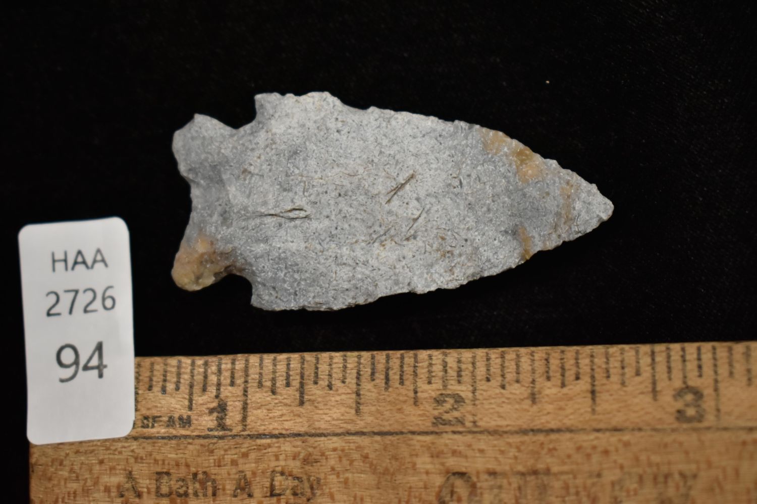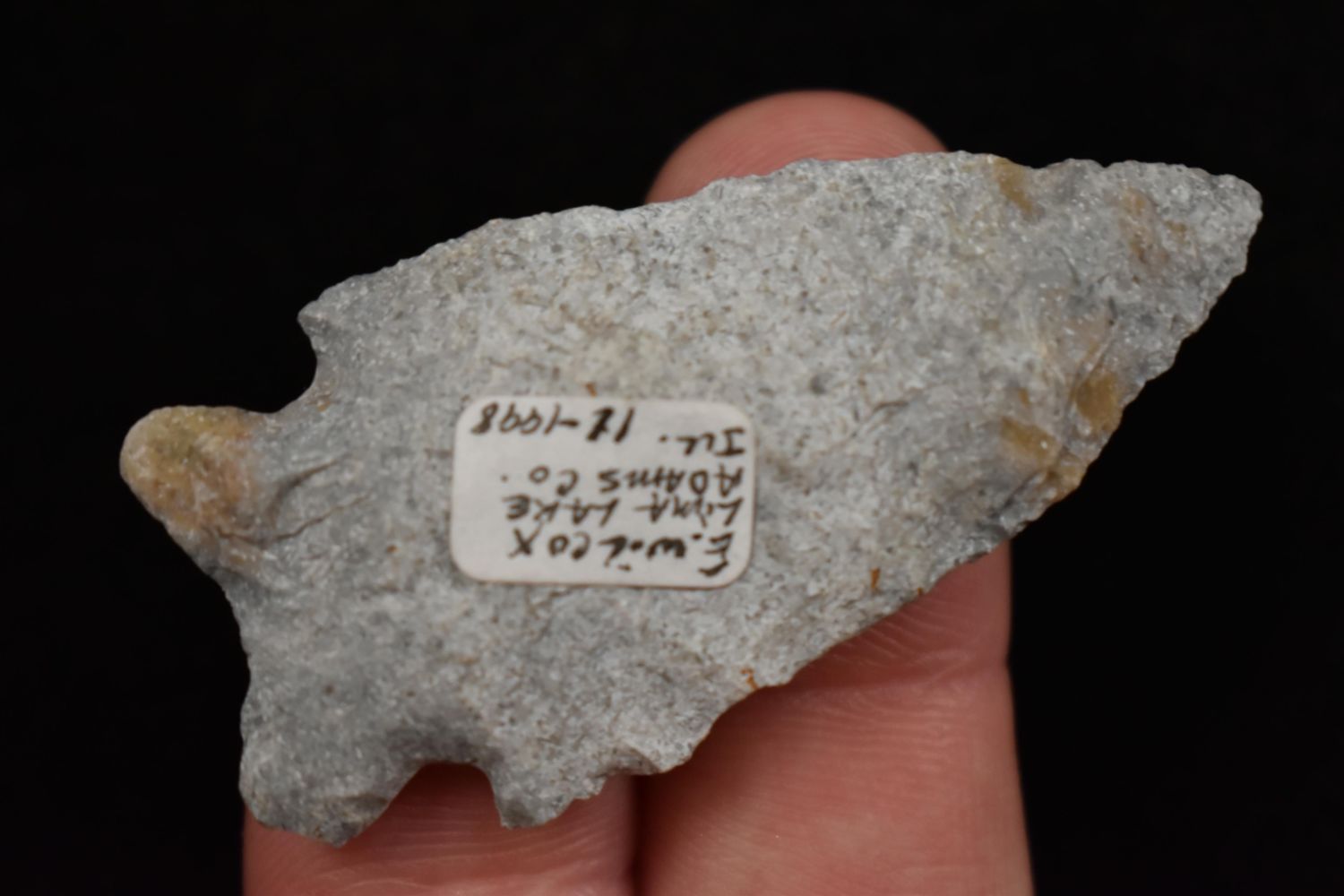 2" Archaic Side Notched Point Found in Lima Lake, Adams County IL by Ed Wilcox in 1998. Native American Artifact