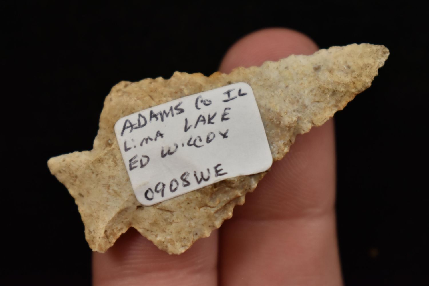 2" Fox valley Point Found in Lima Lake, Adams County IL by Ed Wilcox in 2008. Native American Artifact