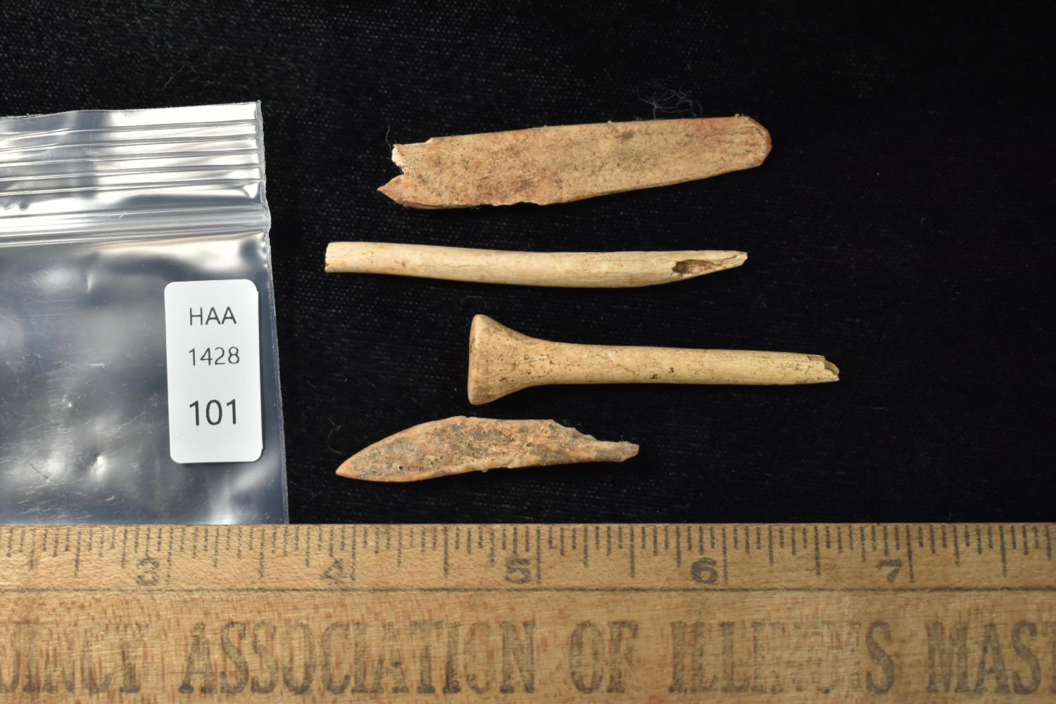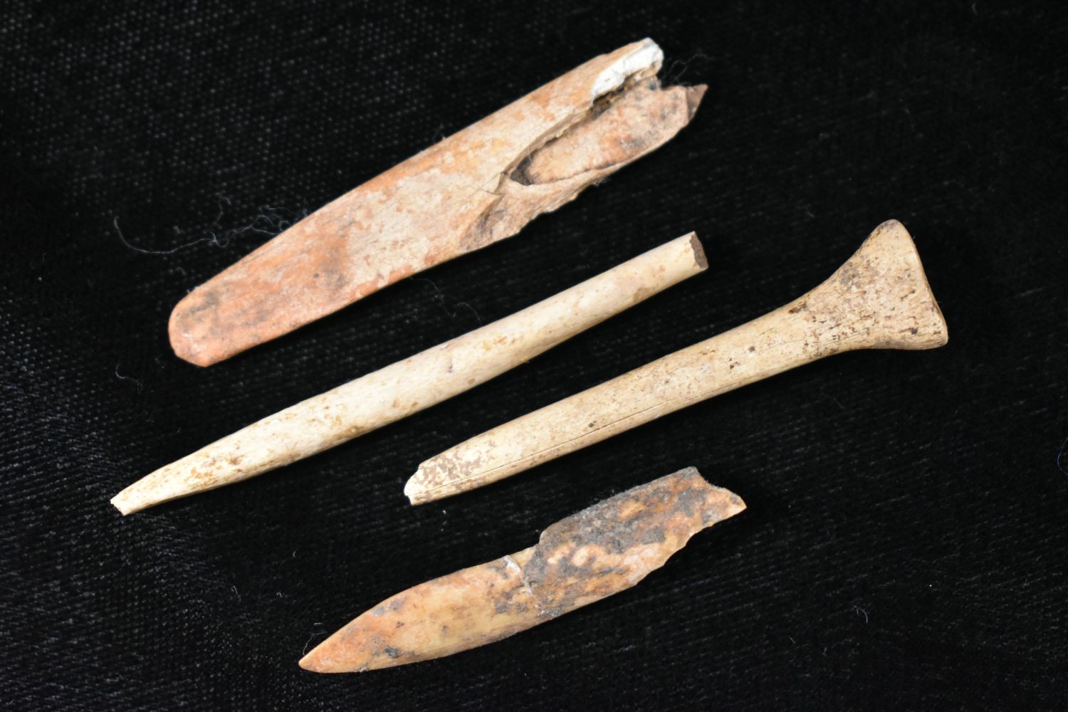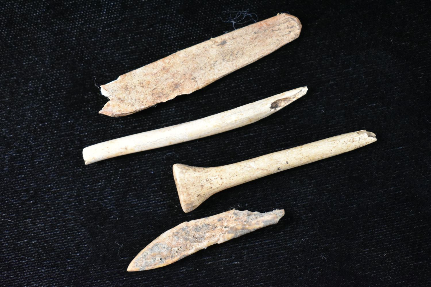 Lot of 4 Bone Tool Fragments, Native American Artifacts