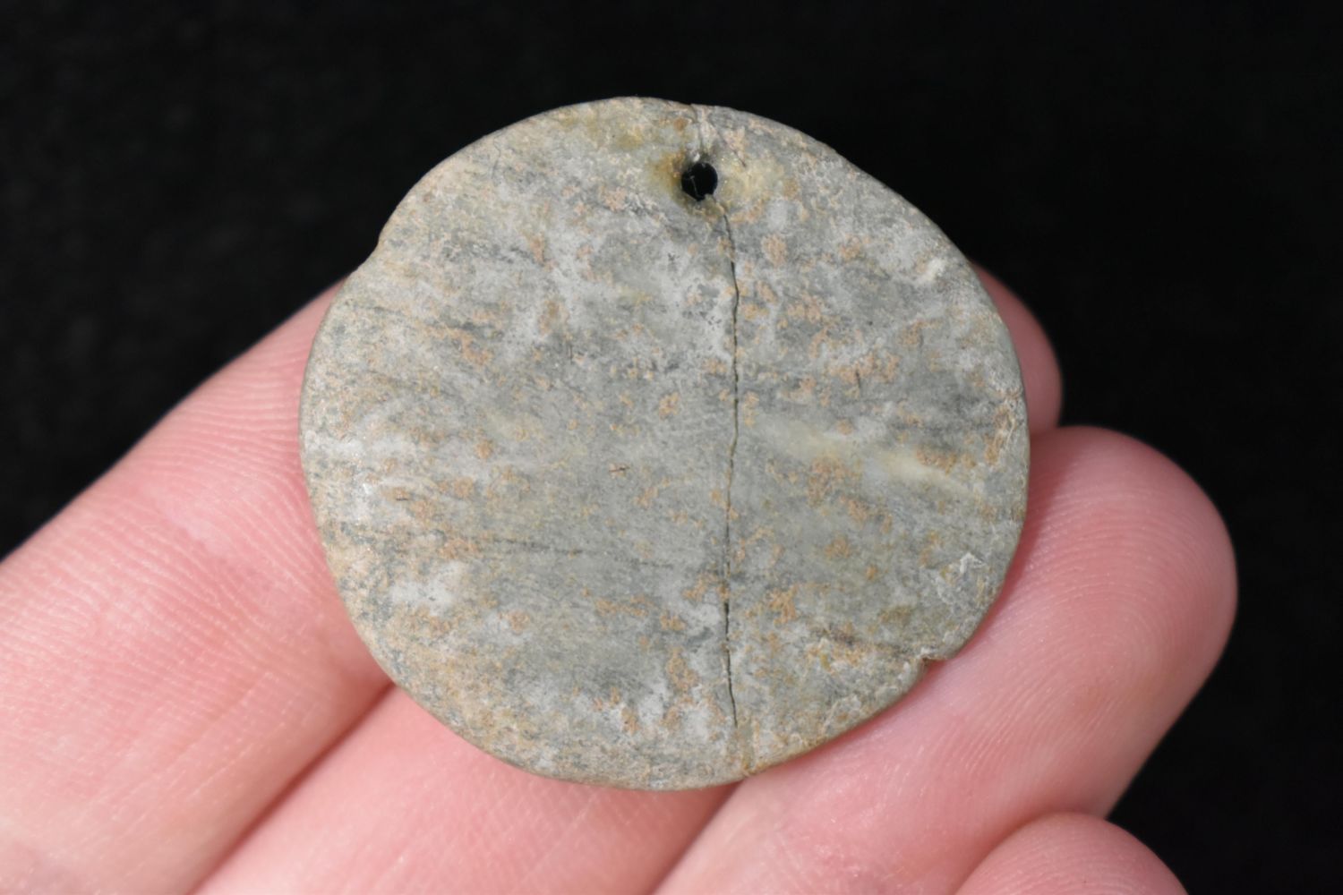 1 1/4" Pre Columbian Polished Stone Pendant, Broken and