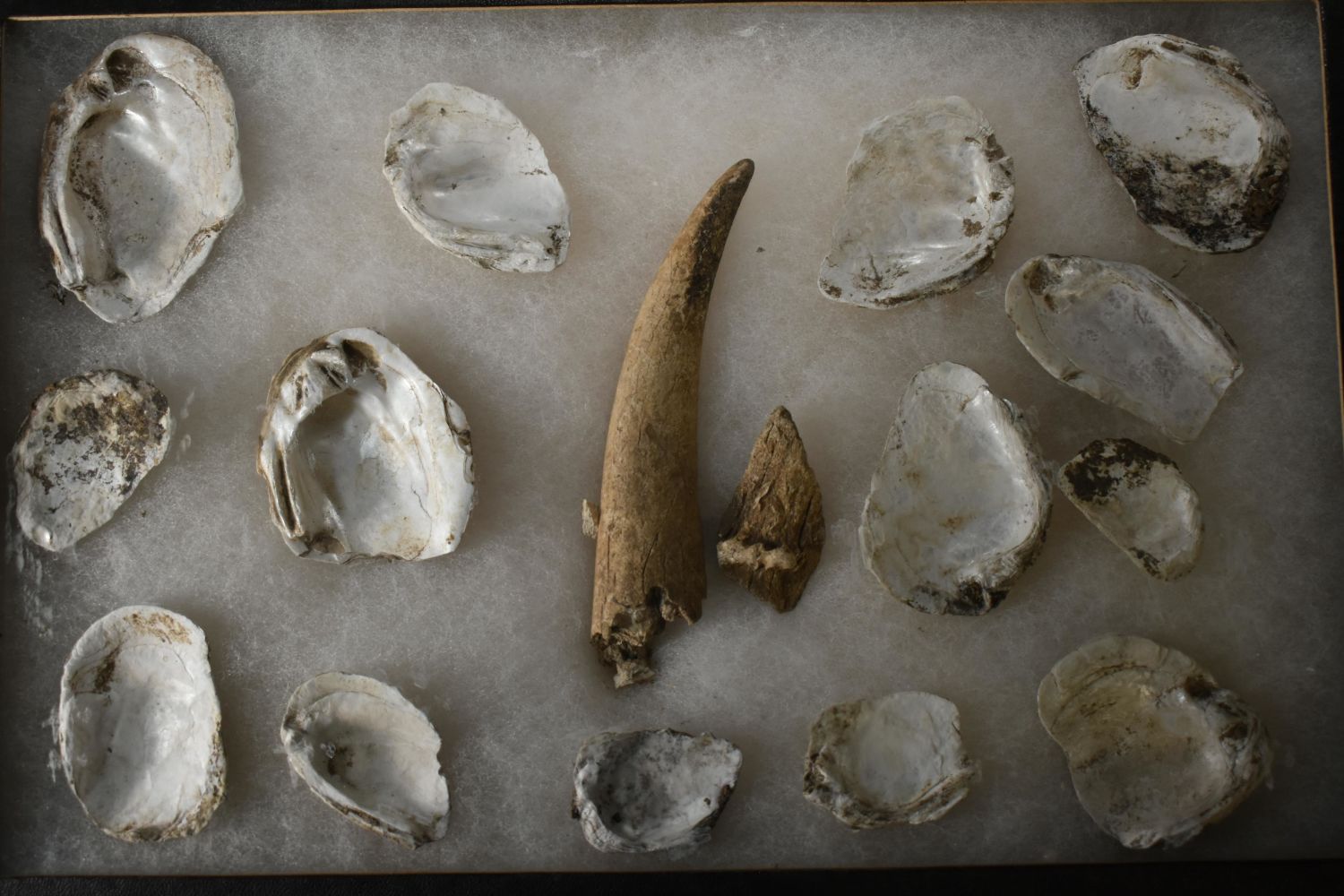 Frame of Shell Spoons and Antler Points from Coshocton,