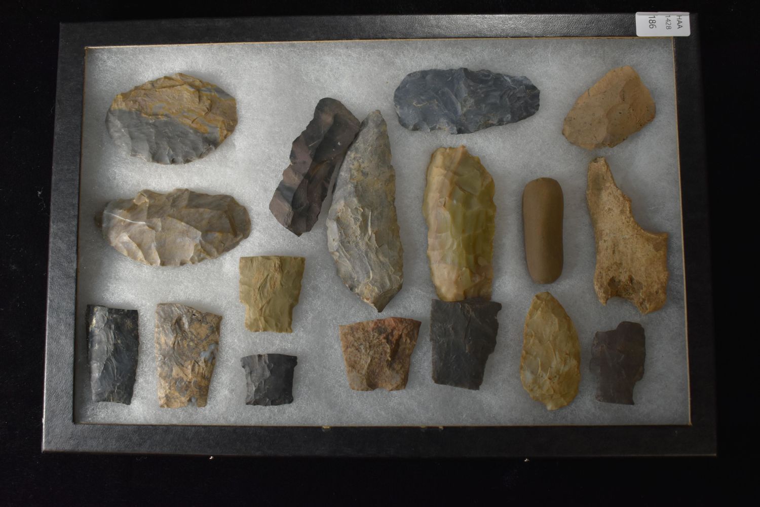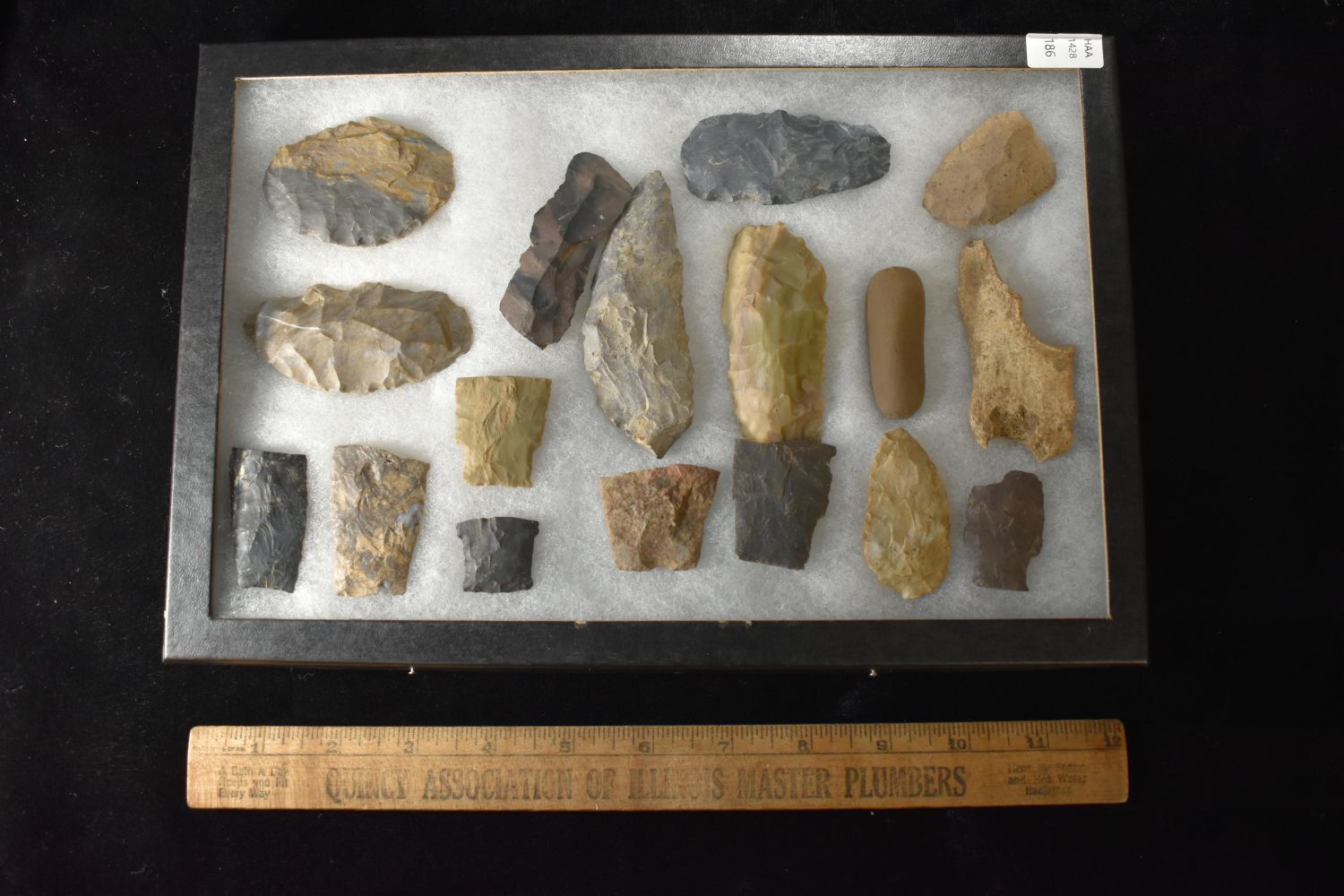 Frame of 17 Blades & Flint Tools from Coshocton, Ohio,