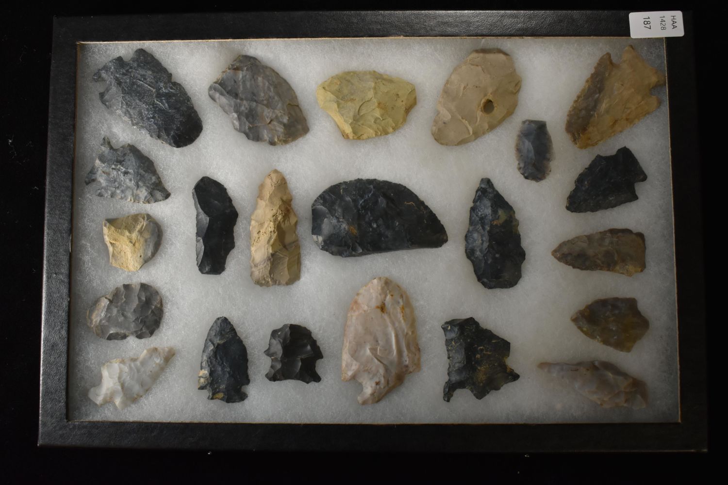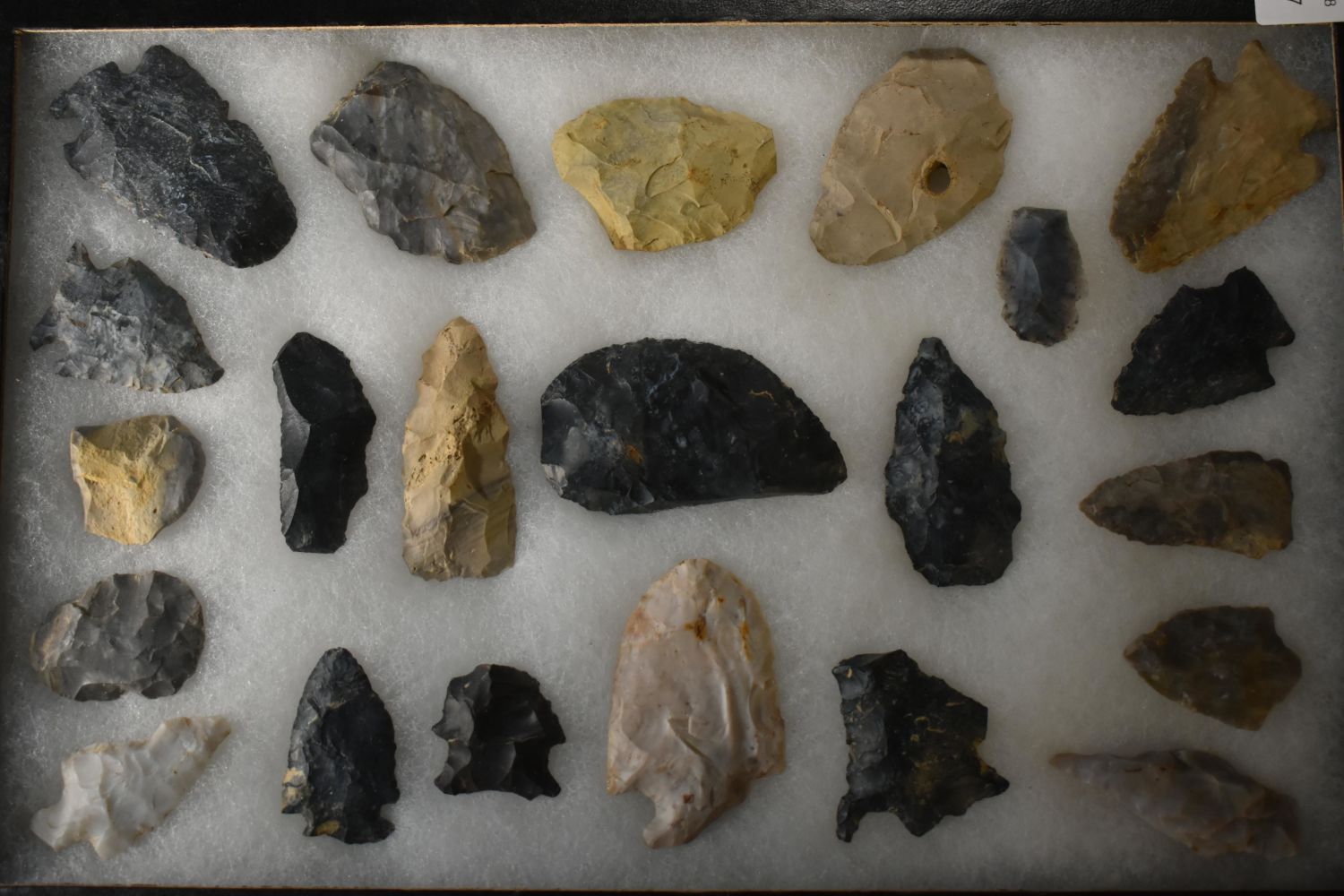 Frame of 22 Flint Arrowheads & Tools from Coshocton,