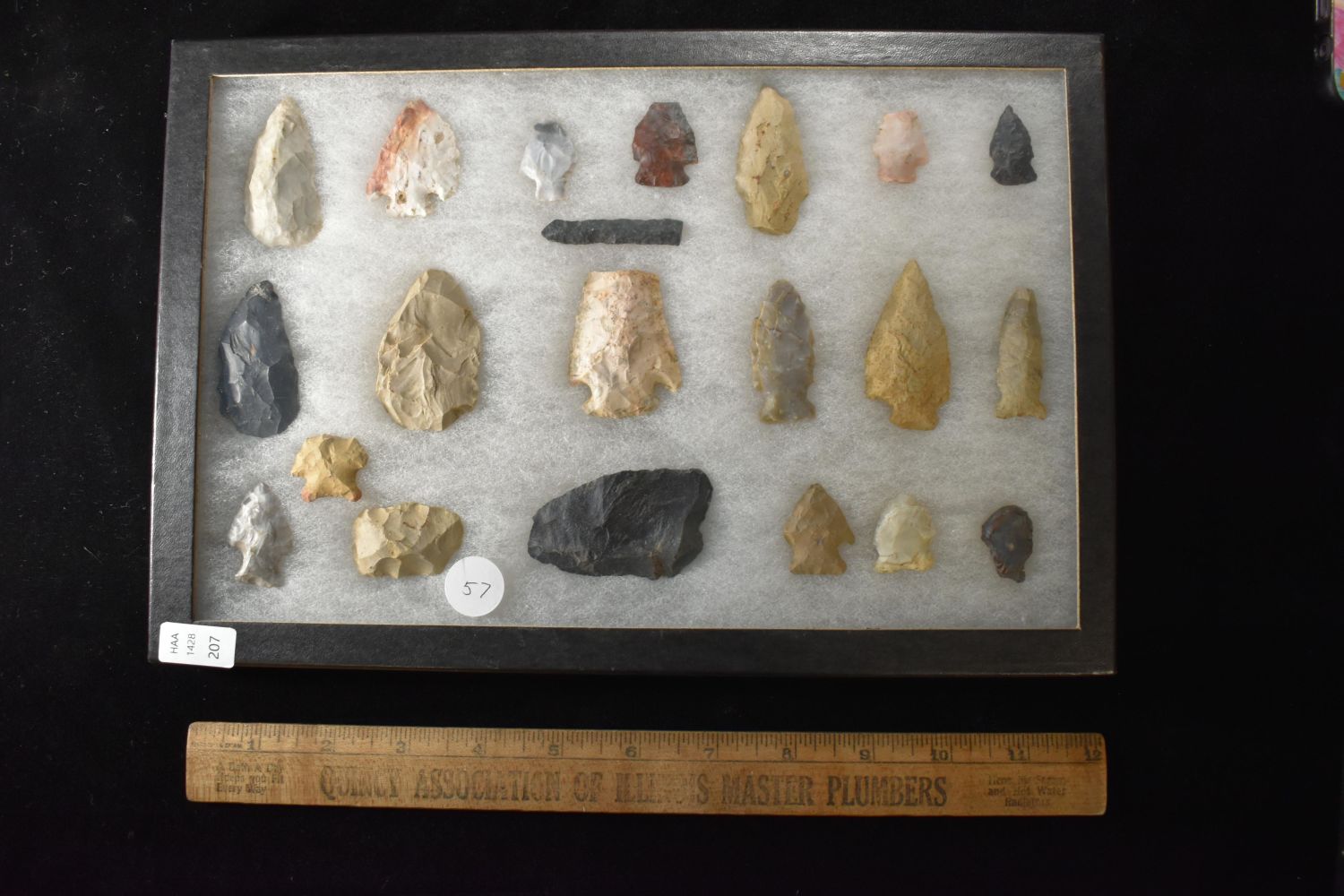 Frame of 21 Flint Points and Tools, OH, Native