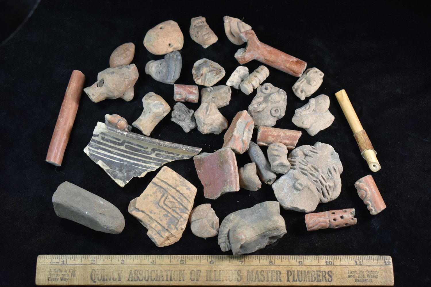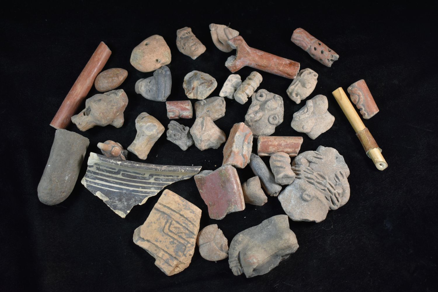 Approx. 50 Broken Pipes and Effigy Heads, Figures