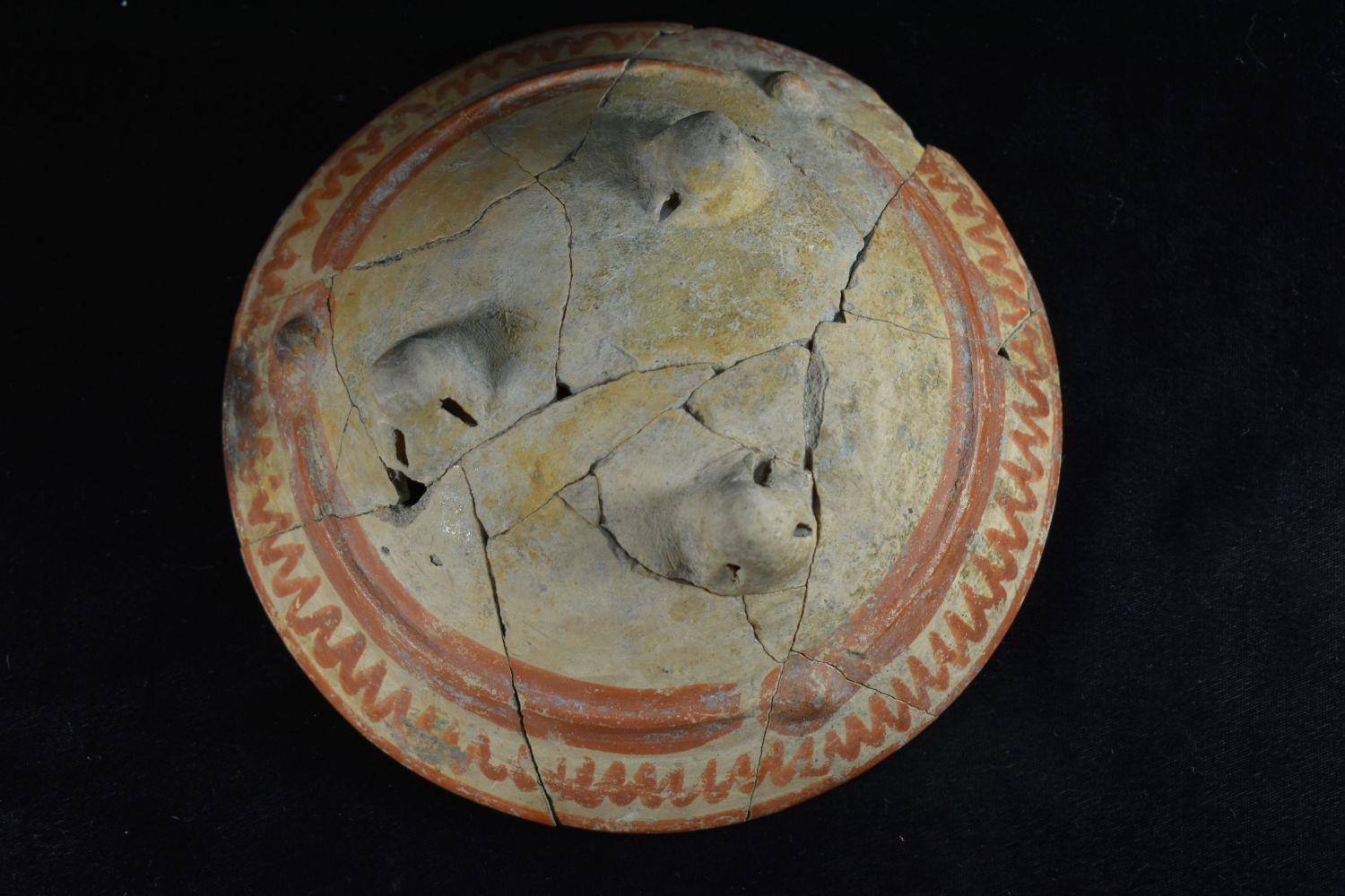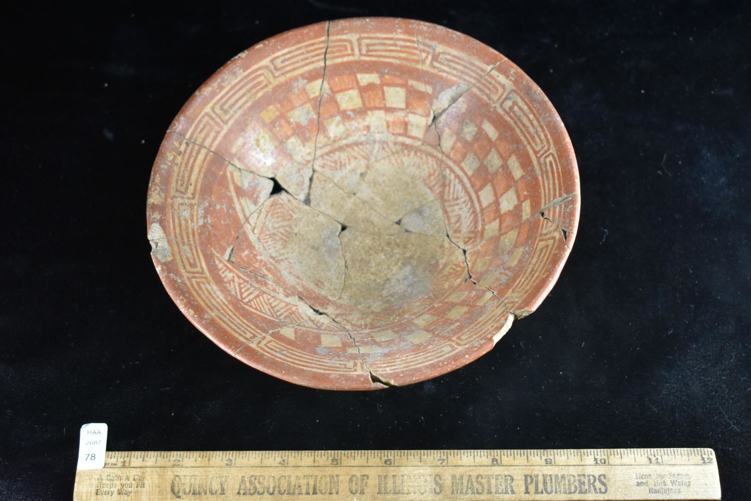 8" Pre Columbian painted Tripod Bowl, Broken and