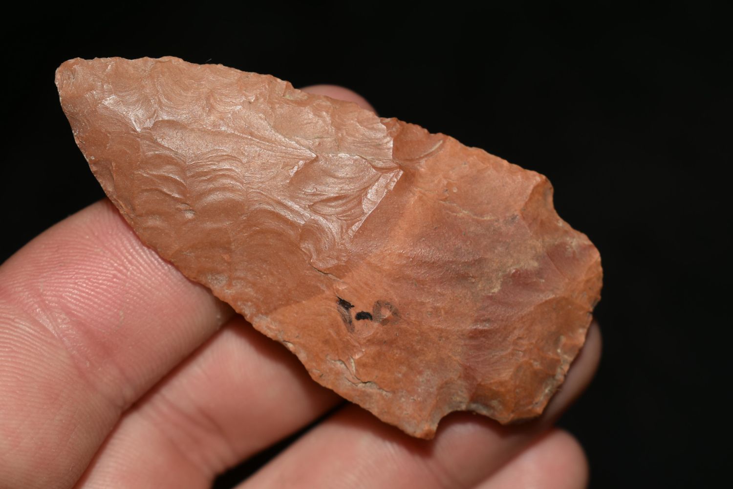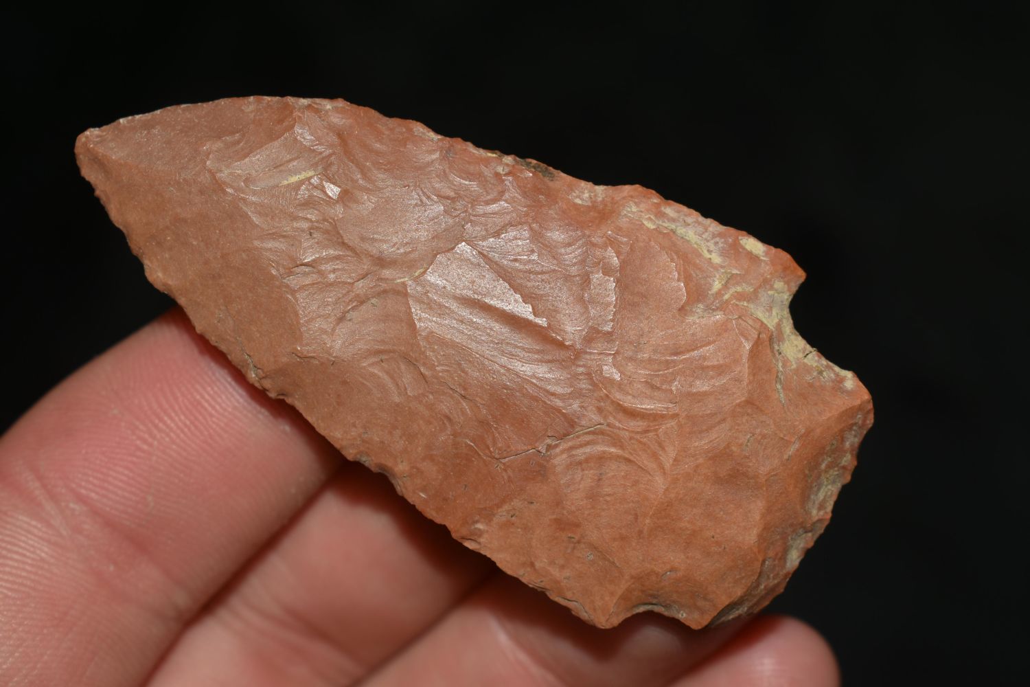 COLORFUL 2 9/16" LONG BENTON FOUND IN THE BENTON / HUMPHREYS COUNTY TENNESSEE AREA BY E.J. SIMS, INDIAN ARROWHEAD, ARTIFACT