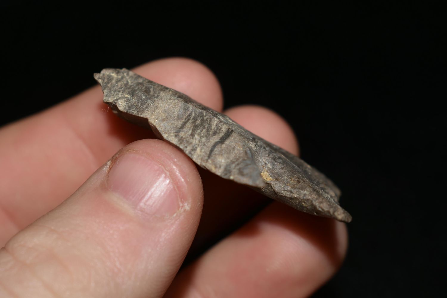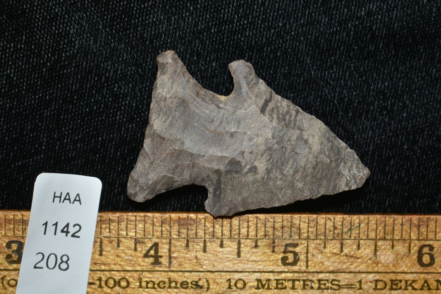 NICE LITTLE DOVER LOST LAKE, 1 3/4" LONG, FOUND IN THE BENTON / HUMPHREYS COUNTY TENNESSEE AREA BY E.J. SIMS, INDIAN ARROWHEAD, ARTIFACT