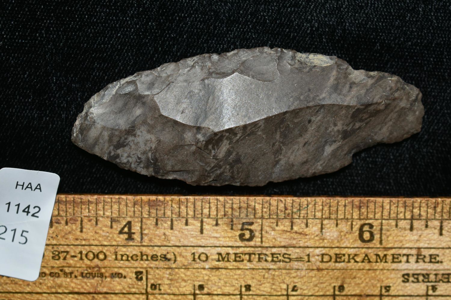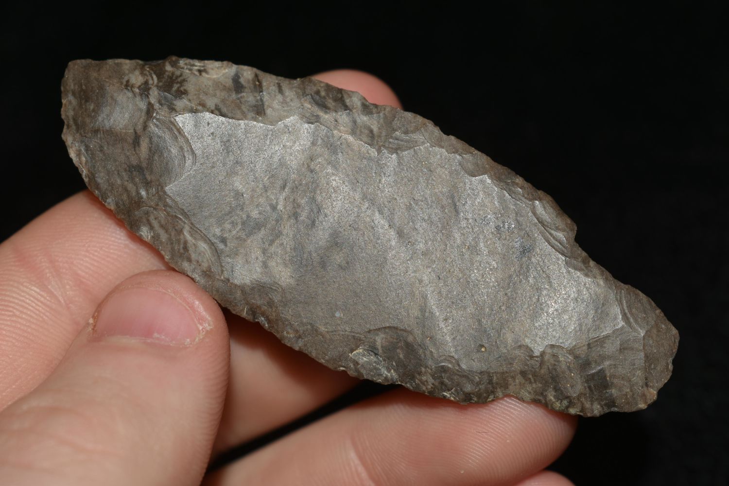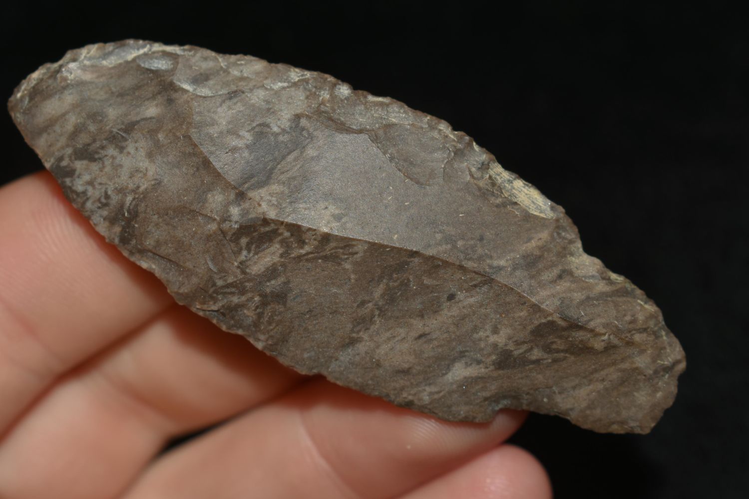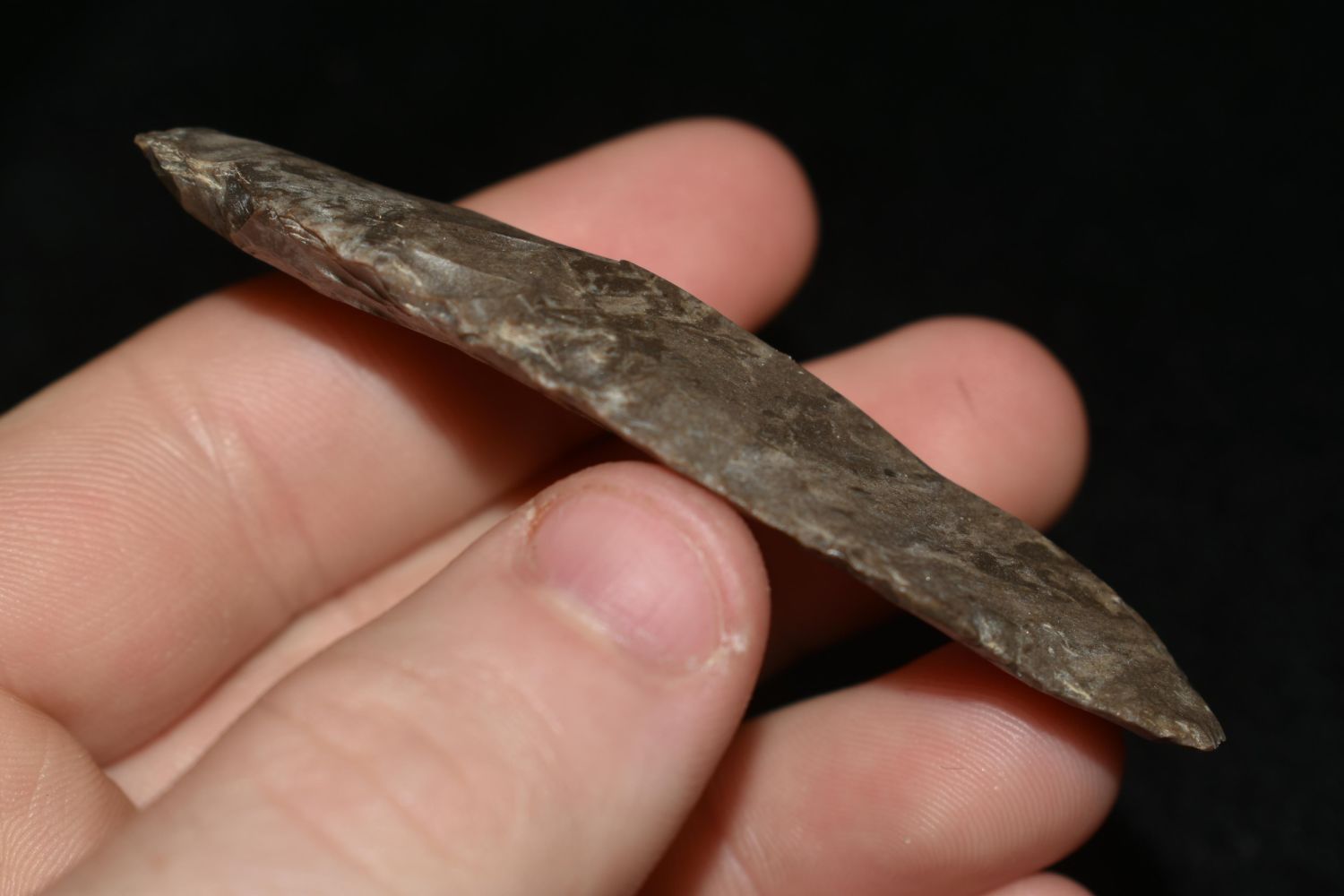 INTERSTING 3" LONG UNIFACED ADENA KNIFE FOUND IN THE BENTON / HUMPHREYS COUNTY TENNESSEE AREA BY E.J. SIMS, INDIAN ARROWHEAD, ARTIFACT
